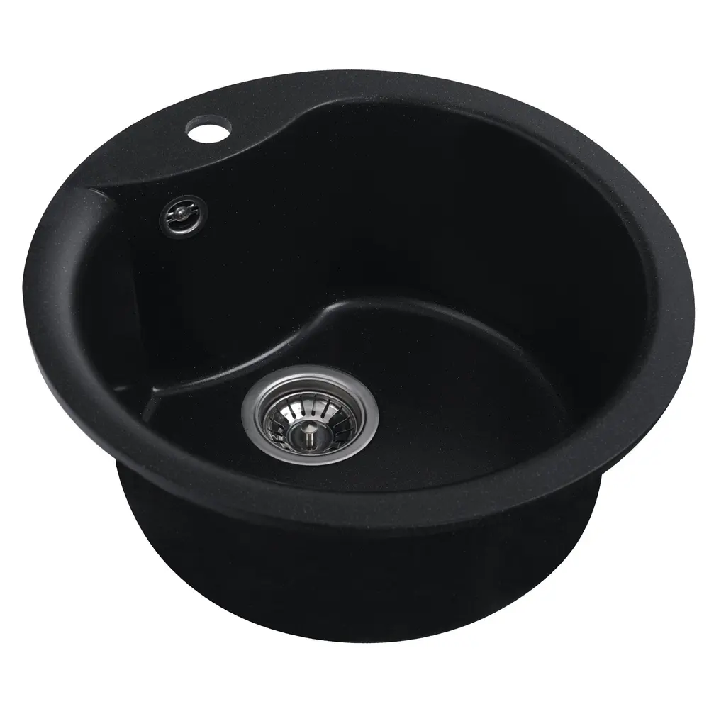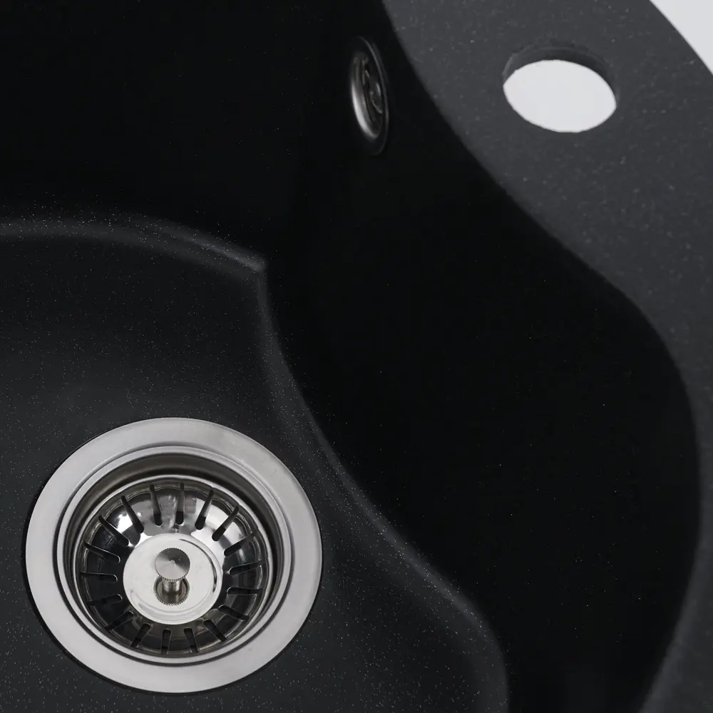 Мойка имеет матовую фактуру и приятный для глаза цвет - черный металлик, что позволяет ей легко вписаться в интерьер кухни.