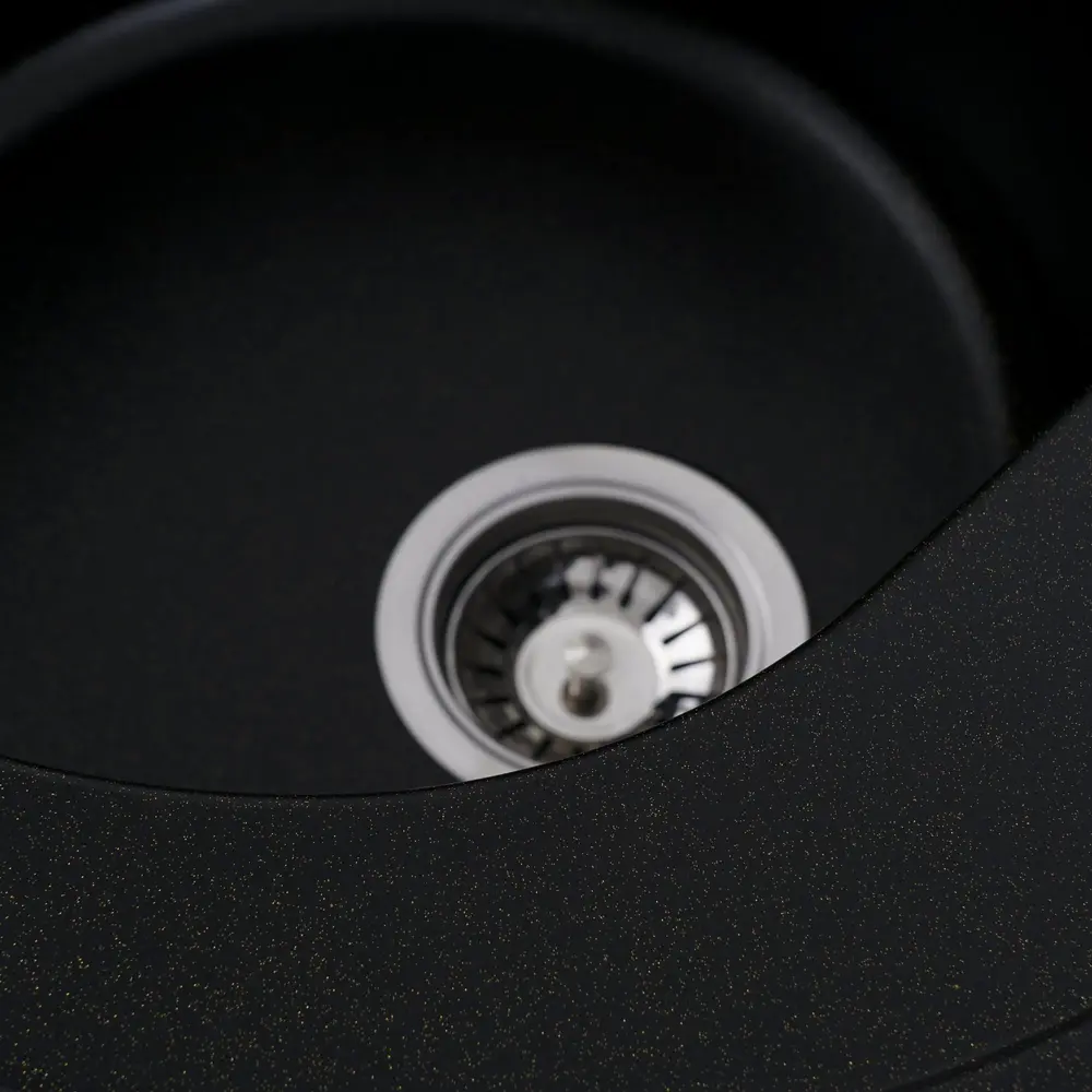 Мийка має матову фактуру і приємний для ока колір - чорний (в золоту крапку), що дозволяє їй легко вписатися в інтер'єр кухні.
