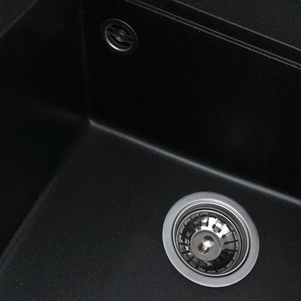 Мийка має матову фактуру і приємний для ока колір - чорний (в золоту крапку), що дозволяє їй легко вписатися в інтер'єр кухні.