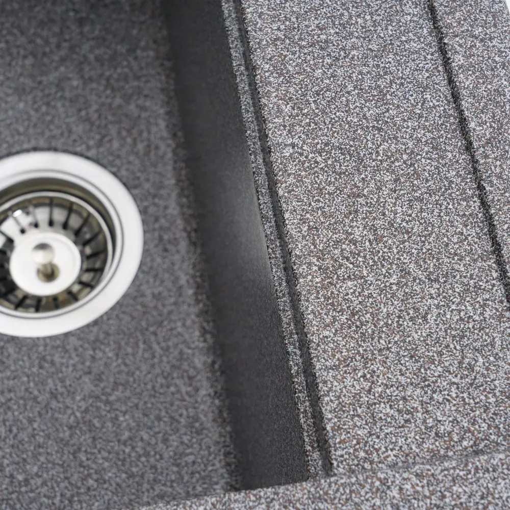 Мийка на 80% складається з кварцу та на 20% з надзвичайно твердої акрилової смоли, завдяки чому невибаглива у догляді, а також має великий запас міцності.