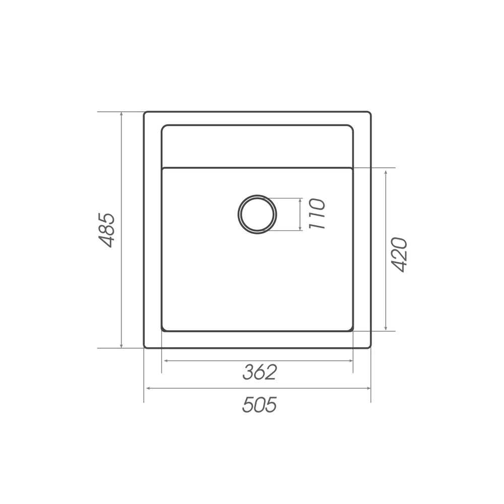 Розміри мийки – 505х485х195 мм, вага – 11,9 кг, сифон – євросифон з широкою горловиною, 110 мм.