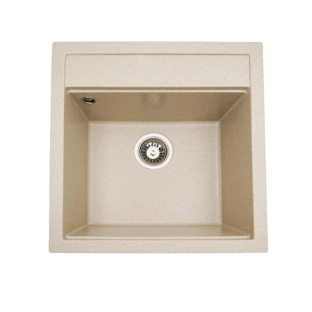 Мойка имеет матовую фактуру и приятный для глаза цвет - сафари, что позволяет ей легко вписаться в интерьер кухни.