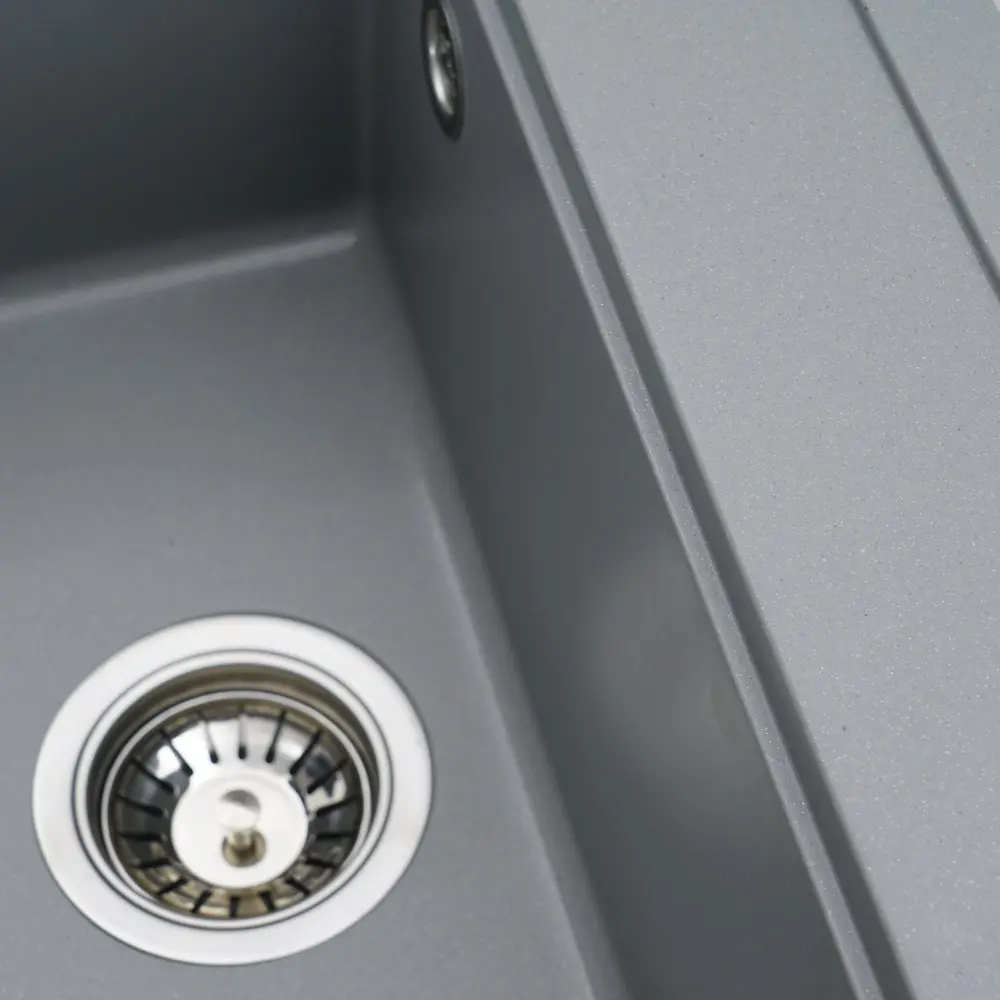 Мийка має матову фактуру і приємний для ока колір - сірий металік, що дозволяє їй легко вписатися в інтер'єр кухні.