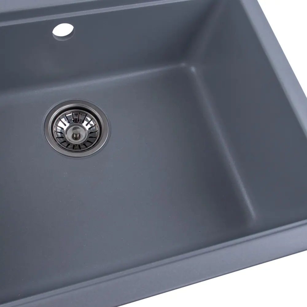 Мийка має матову фактуру і приємний для ока колір - сірий (металік), що дозволяє їй легко вписатися в інтер'єр кухні.