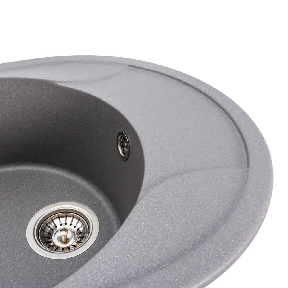 Гранітна мийка для кухні 5847 ONYX українського бренду Platinum - це стильна, врізна, овальна мийка, яка своїм виглядом чудово доповнить дизайн вашої кухні. Мийка на 80% складається з кварцу та на 20% з надзвичайно твердої акрилової смоли, завдяки чому невибаглива у догляді, а також має великий запас міцності. Розміри чаші, 390х390х185 мм, роблять її дуже місткою та зручною у використанні, а наявність відділу для сушіння робить процес миття посуду швидким і легким. Мийка має матову фактуру і приємний для ока колір що дозволяє їй легко вписатися в інтер'єр кухні. Мийка виготовлена в Україні із якісної німецької сировини за технологією Solid Surface з дотриманням усіх необхідних стандартів.