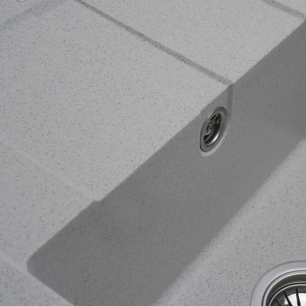 Мийка на 80% складається з кварцу та на 20% з надзвичайно твердої акрилової смоли, завдяки чому невибаглива у догляді, а також має великий запас міцності.