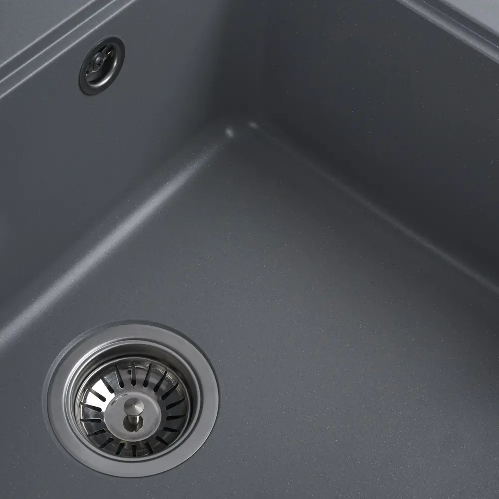 Мийка має матову фактуру і приємний для ока колір - сірий металік, що дозволяє їй легко вписатися в інтер'єр кухні.