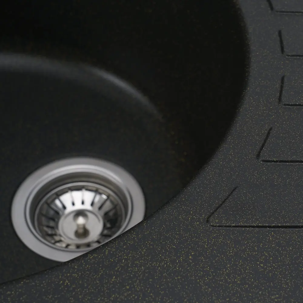 Мийка має матову фактуру і приємний для ока колір - чорний (в золоту крапку), що дозволяє їй легко вписатися в інтер'єр кухні.