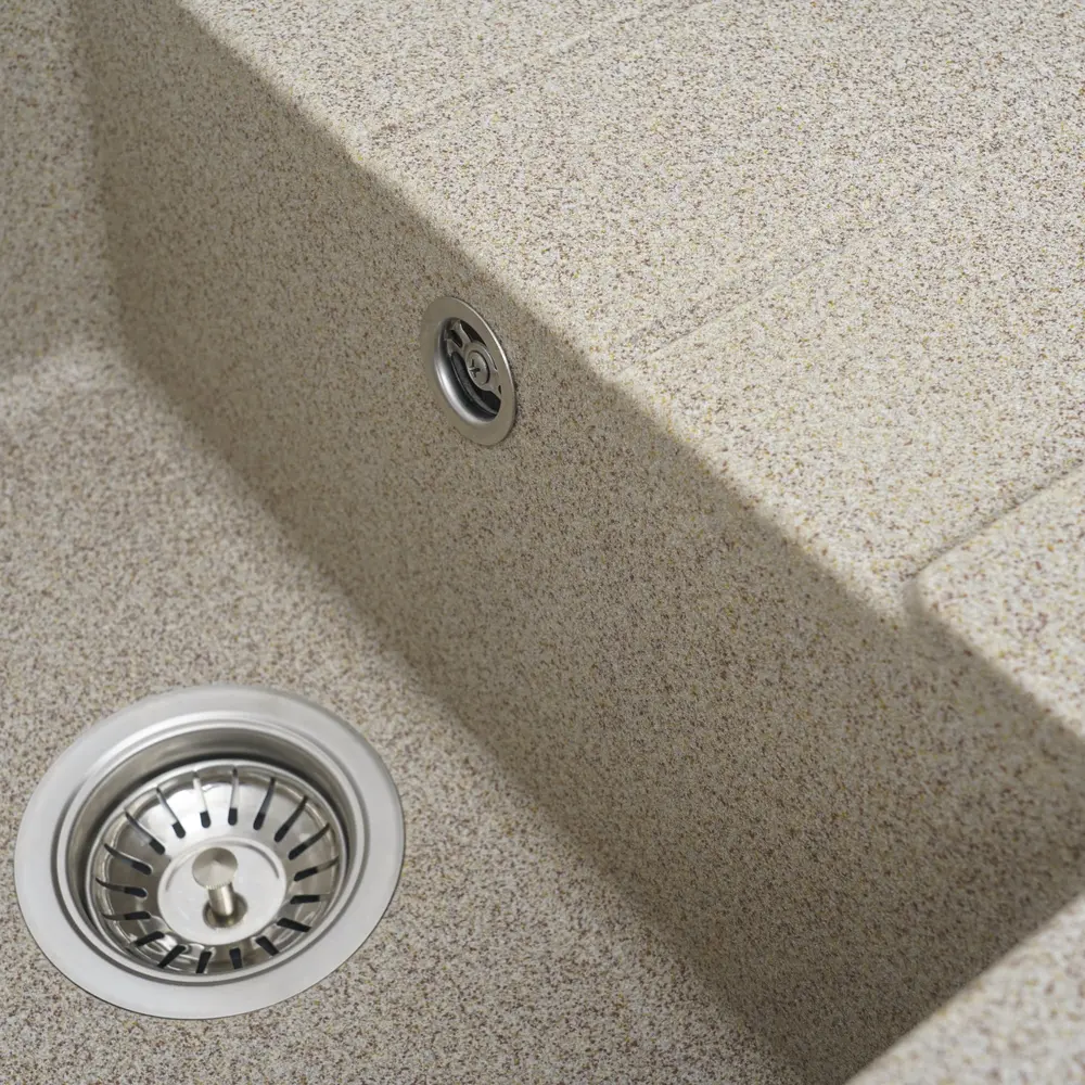 Мийка на 80% складається з кварцу та на 20% з надзвичайно твердої акрилової смоли, завдяки чому невибаглива у догляді, а також має великий запас міцності.