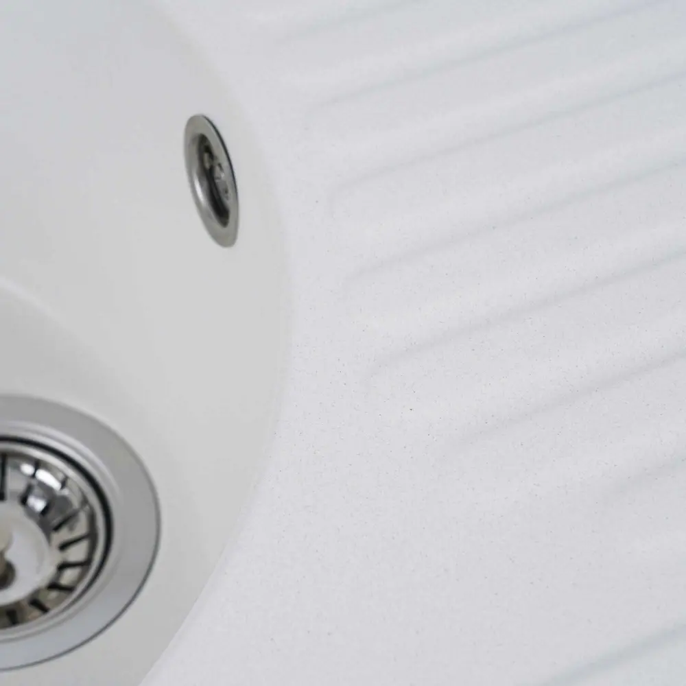 Мийка має глянцеву фактуру і приємний для ока колір - білосніжний, що дозволяє їй легко вписатися в інтер'єр кухні.