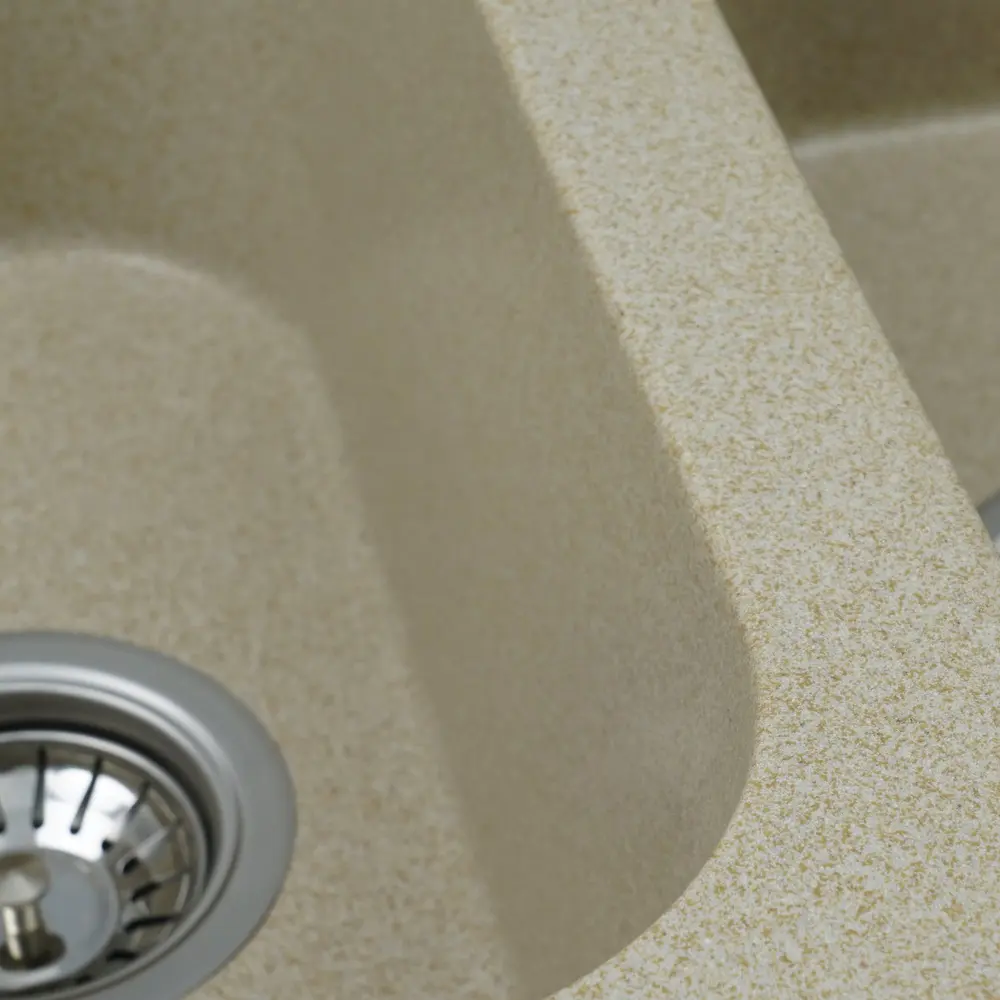 Мийка на 80% складається з кварцу та на 20% з надзвичайно твердої акрилової смоли, завдяки чому невибаглива у догляді, а також має великий запас міцності.