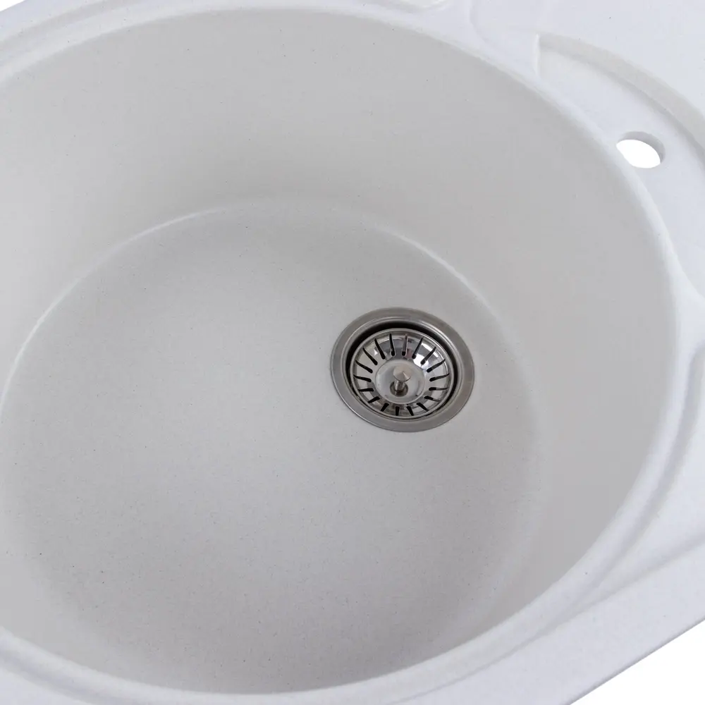 Мийка має глянцеву фактуру і приємний для ока колір - білий, що дозволяє їй легко вписатися в інтер'єр кухні.