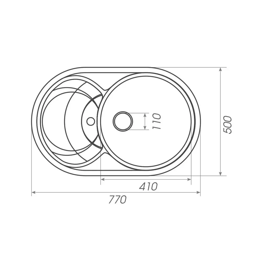 Розміри мийки – 775x500х195 мм, вага – 11.7 кг, сифон – євросифон з широкою горловиною, 110 мм.