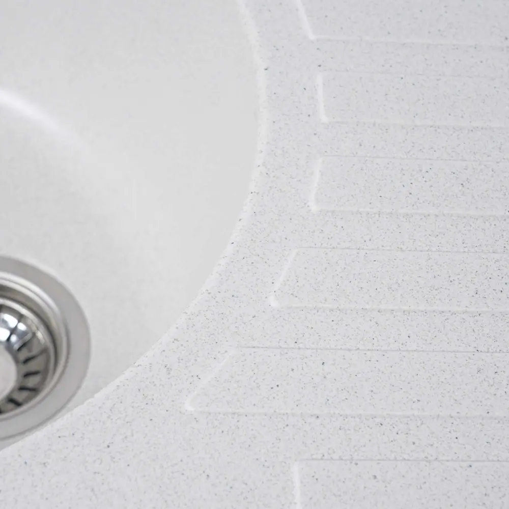 Мийка на 80% складається з кварцу та на 20% з надзвичайно твердої акрилової смоли, завдяки чому невибаглива у догляді, а також має великий запас міцності.