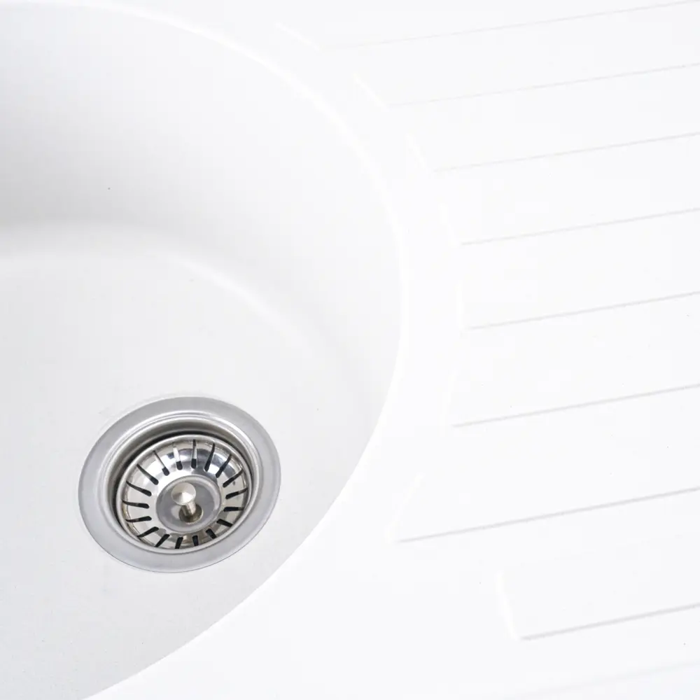 Мийка має матову фактуру і приємний для ока колір - білосніжний, що дозволяє їй легко вписатися в інтер'єр кухні.