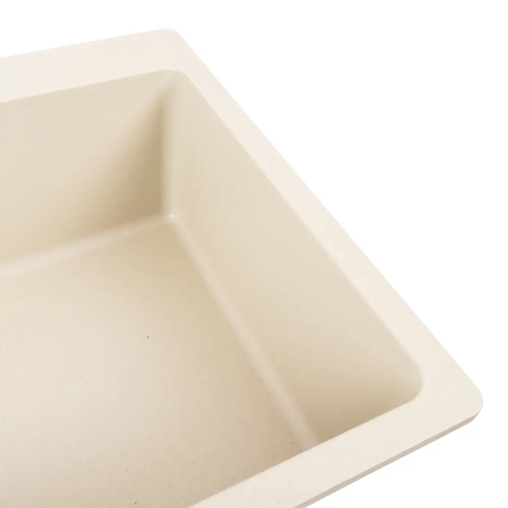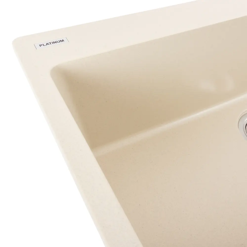 Гранітна мийка для кухні 7850 BOGEMA українського бренду Platinum - це стильна, врізна, прямокутна мийка, яка своїм виглядом чудово доповнить дизайн вашої кухні. Мийка на 80% складається з кварцу та на 20% з надзвичайно твердої акрилової смоли, завдяки чому невибаглива у догляді, а також має великий запас міцності. Мийка має матову фактуру і приємний для ока колір, що дозволяє їй легко вписатися в інтер'єр кухні. Мийка виготовлена в Україні із якісної німецької сировини за технологією Solid Surface з дотриманням усіх необхідних стандартів.
