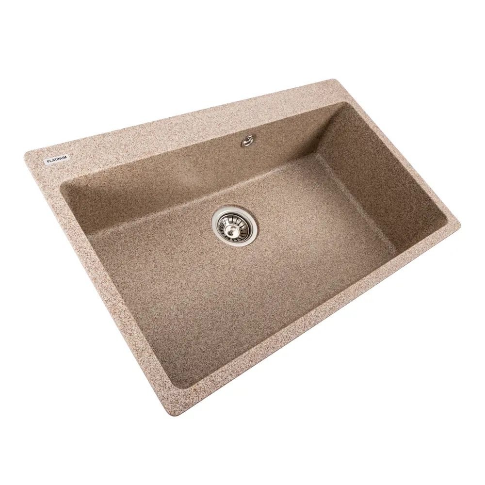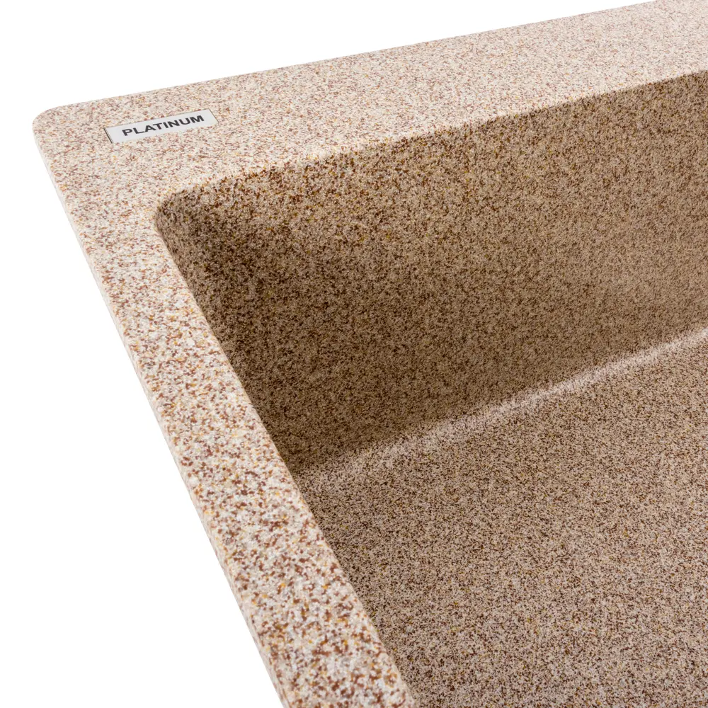 Гранітна мийка для кухні 7850 BOGEMA українського бренду Platinum - це стильна, врізна, прямокутна мийка, яка своїм виглядом чудово доповнить дизайн вашої кухні. Мийка на 80% складається з кварцу та на 20% з надзвичайно твердої акрилової смоли, завдяки чому невибаглива у догляді, а також має великий запас міцності. Мийка має матову фактуру і приємний для ока колір, що дозволяє їй легко вписатися в інтер'єр кухні. Мийка виготовлена в Україні із якісної німецької сировини за технологією Solid Surface з дотриманням усіх необхідних стандартів.