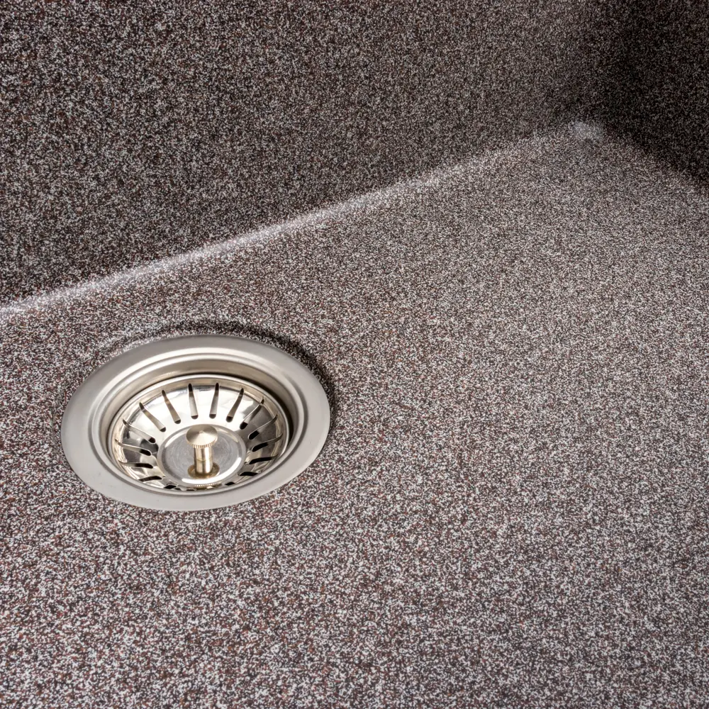 Мойка на 80% состоит из кварца и на 20% из чрезвычайно твердой акриловой смолы, благодаря чему неприхотлива в уходе, а также имеет большой запас прочности.