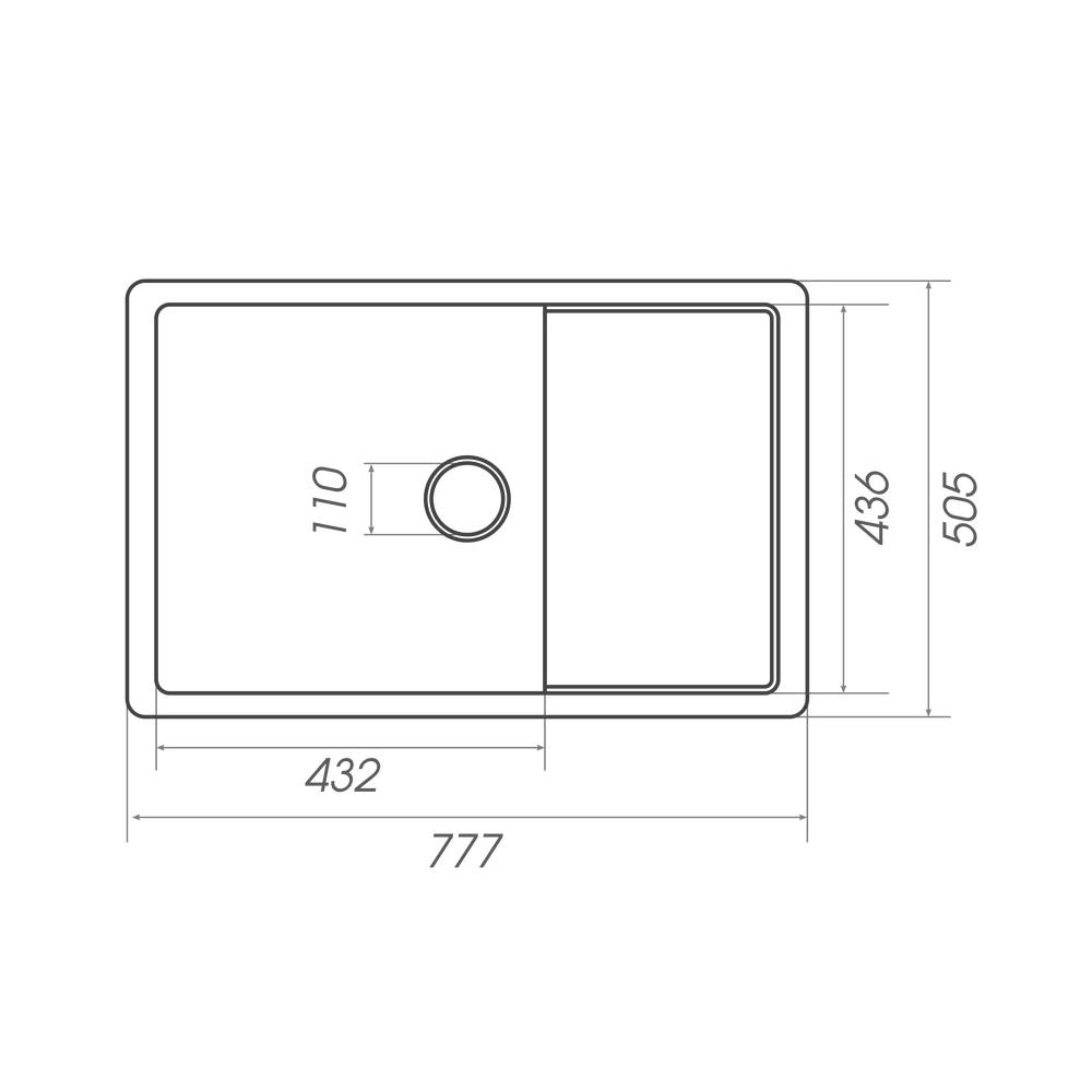 Розміри мийки – 777х505х180 мм, вага – 14,5 кг, сифон – євросифон з широкою горловиною, 110 мм.
