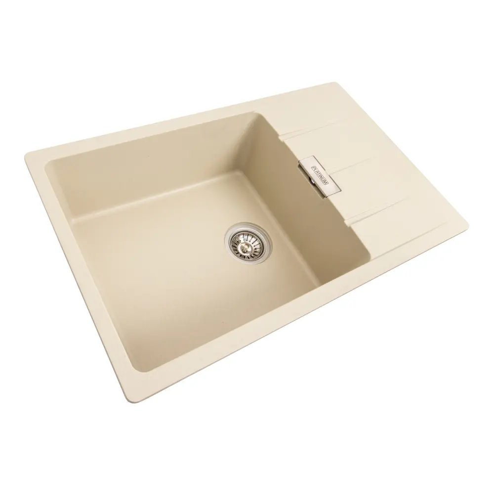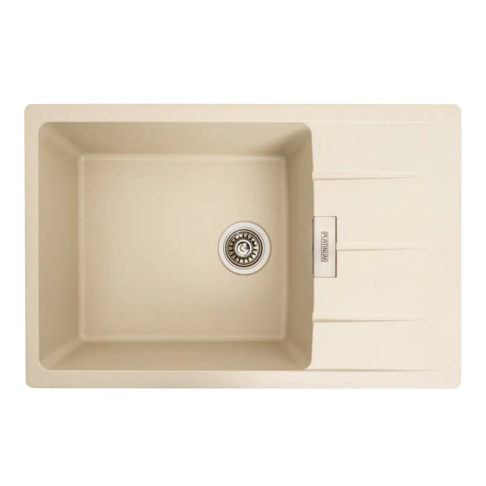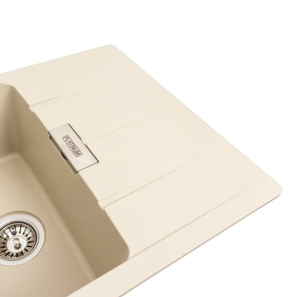 Гранітна мийка для кухні 7850 ROMA mat українського бренду Platinum - це стильна, врізна, прямокутна мийка, яка своїм виглядом чудово доповнить дизайн вашої кухні. Мийка на 80% складається з кварцу та на 20% з надзвичайно твердої акрилової смоли, завдяки чому невибаглива у догляді, а також має великий запас міцності. Розміри чаші, 492x435x200 мм, роблять її дуже місткою та зручною у використанні. Монтаж здійснюється врізним способом у кухонну шафу шириною не менше 500 мм. Мийка має матову фактуру і приємний для ока колір що дозволяє їй легко вписатися в інтер'єр кухні. Мийка виготовлена в Україні із якісної німецької сировини за технологією Solid Surface з дотриманням усіх необхідних стандартів.