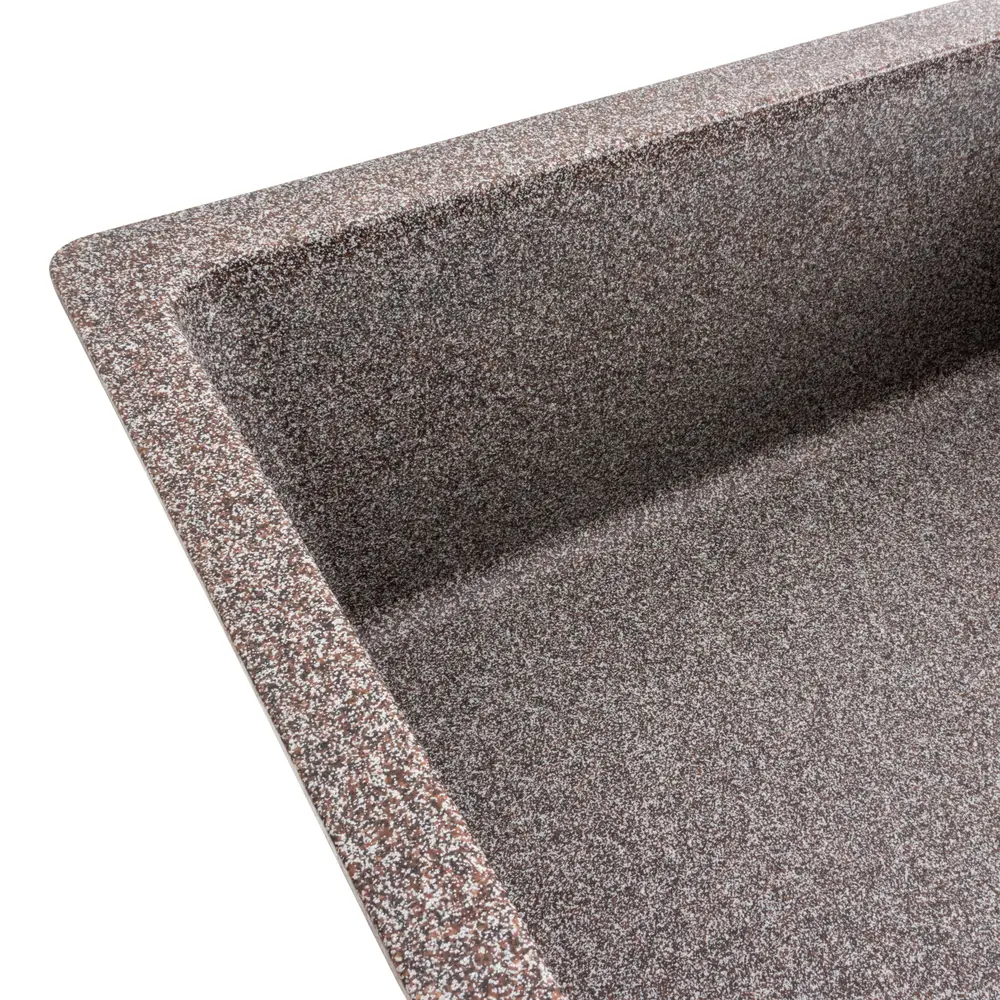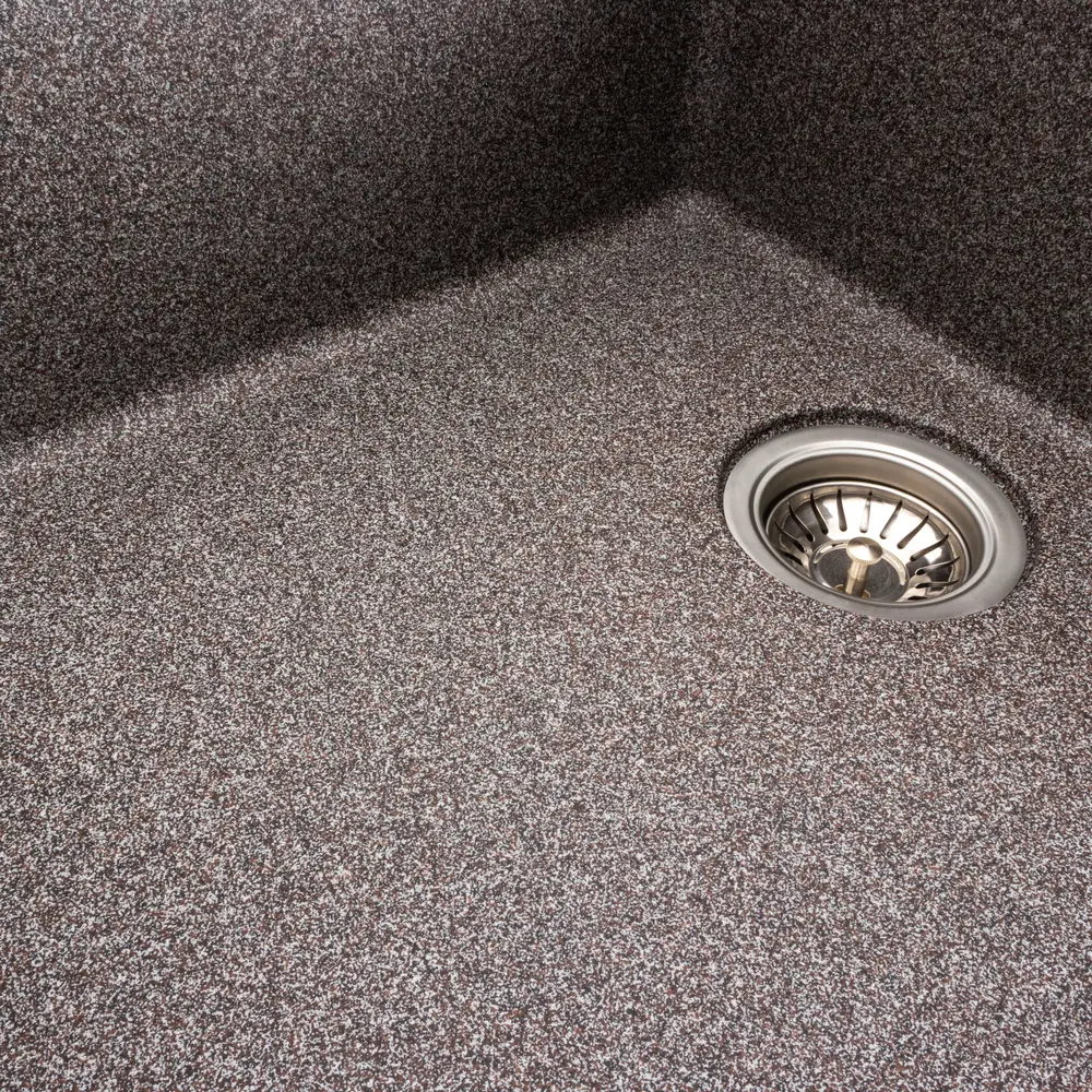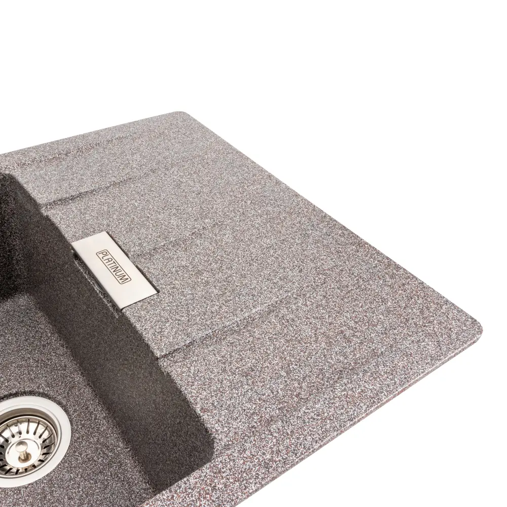 Гранітна мийка для кухні 7850 ROMA mat українського бренду Platinum - це стильна, врізна, прямокутна мийка, яка своїм виглядом чудово доповнить дизайн вашої кухні. Мийка на 80% складається з кварцу та на 20% з надзвичайно твердої акрилової смоли, завдяки чому невибаглива у догляді, а також має великий запас міцності. Розміри чаші, 492x435x200 мм, роблять її дуже місткою та зручною у використанні. Монтаж здійснюється врізним способом у кухонну шафу шириною не менше 500 мм. Мийка має матову фактуру і приємний для ока колір що дозволяє їй легко вписатися в інтер'єр кухні. Мийка виготовлена в Україні із якісної німецької сировини за технологією Solid Surface з дотриманням усіх необхідних стандартів.