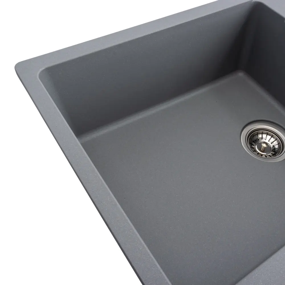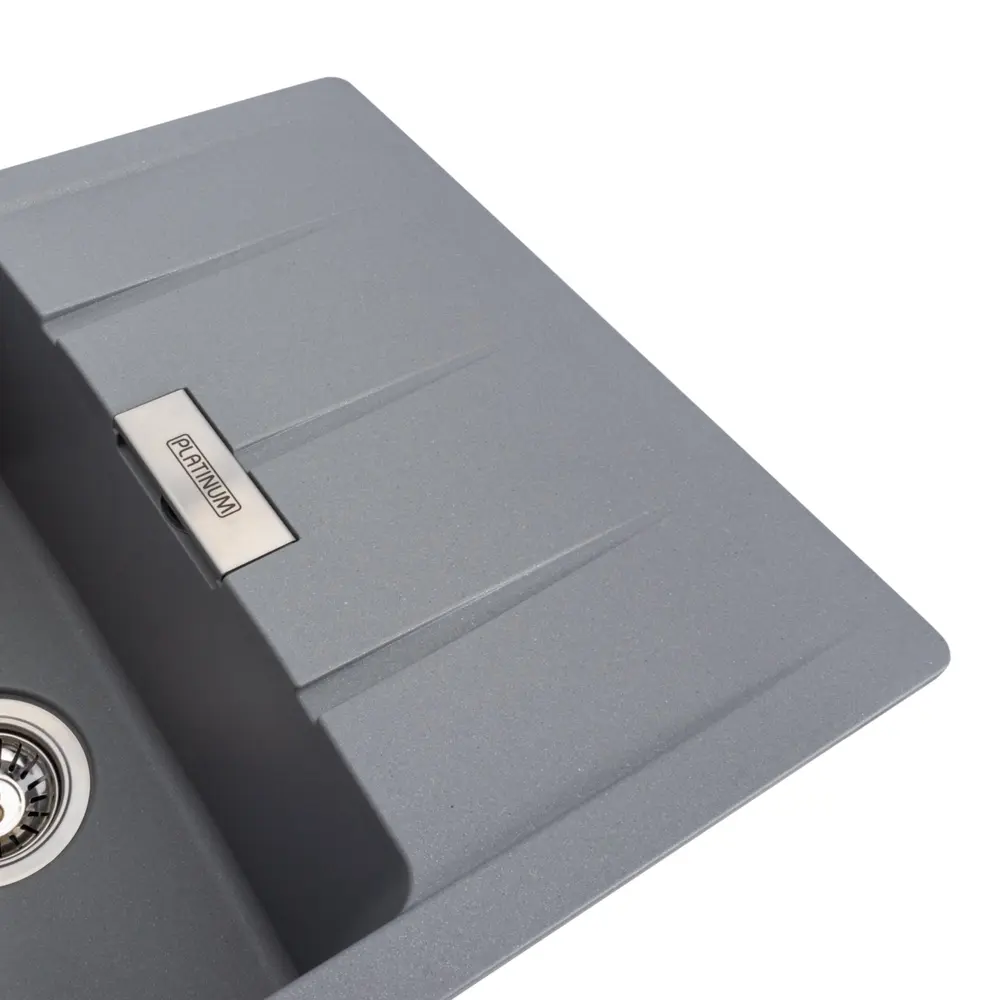 Гранітна мийка для кухні 7850 ROMA mat українського бренду Platinum - це стильна, врізна, прямокутна мийка, яка своїм виглядом чудово доповнить дизайн вашої кухні. Мийка на 80% складається з кварцу та на 20% з надзвичайно твердої акрилової смоли, завдяки чому невибаглива у догляді, а також має великий запас міцності. Розміри чаші, 492x435x200 мм, роблять її дуже місткою та зручною у використанні. Монтаж здійснюється врізним способом у кухонну шафу шириною не менше 500 мм. Мийка має матову фактуру і приємний для ока колір що дозволяє їй легко вписатися в інтер'єр кухні. Мийка виготовлена в Україні із якісної німецької сировини за технологією Solid Surface з дотриманням усіх необхідних стандартів.