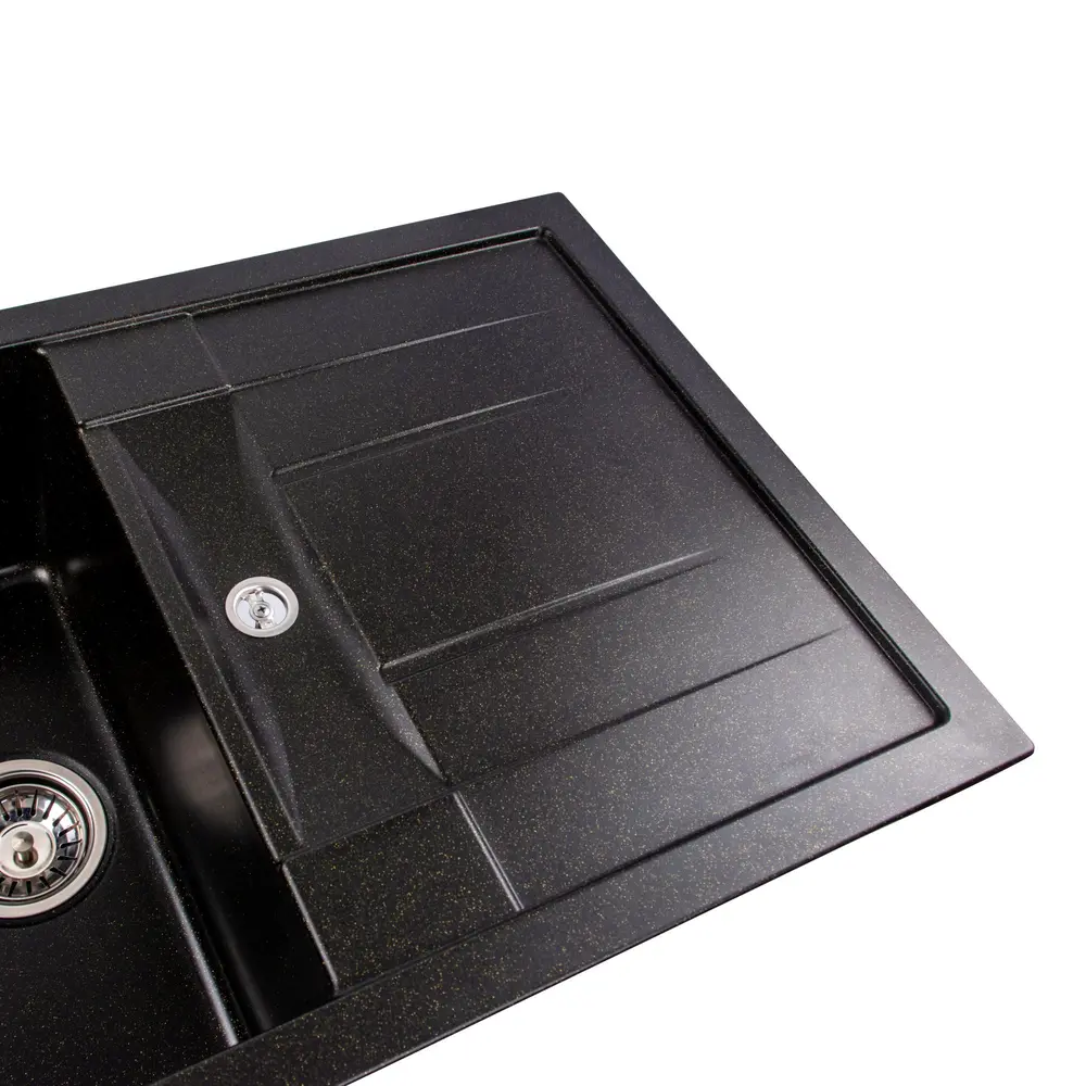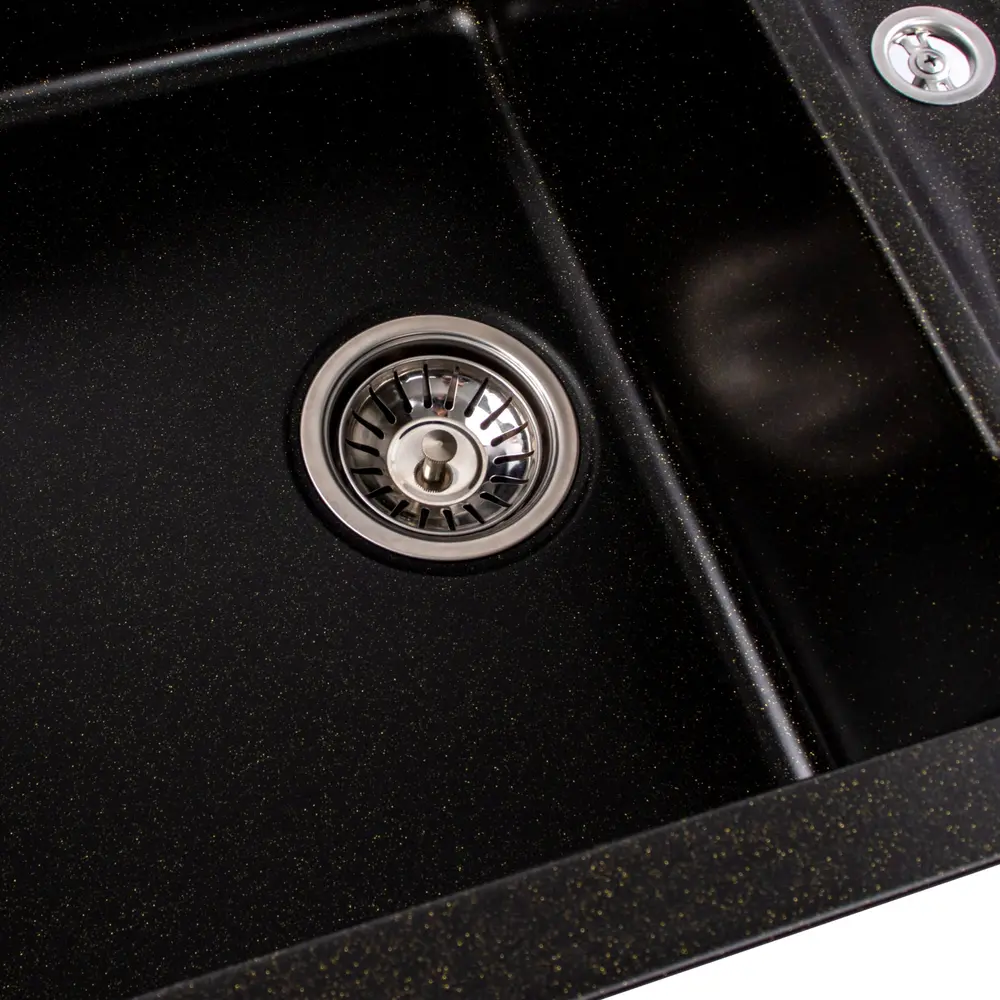 Мийка має матову фактуру і приємний для ока колір - чорний (в золоту крапку), що дозволяє їй легко вписатися в інтер'єр кухні.