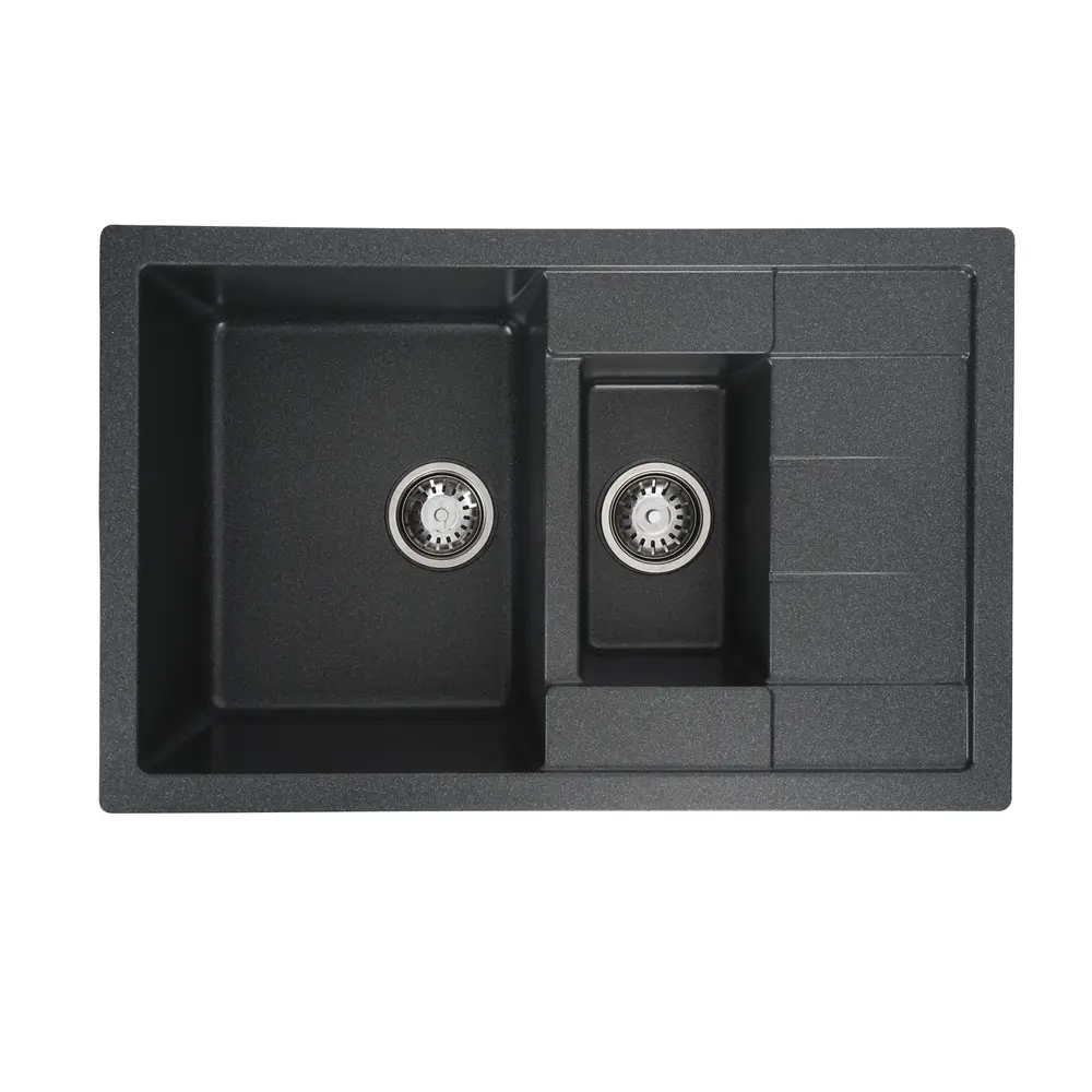 Мойка на 80% состоит из кварца и на 20% из чрезвычайно твердой акриловой смолы, благодаря чему неприхотлива в уходе, а также имеет большой запас прочности.