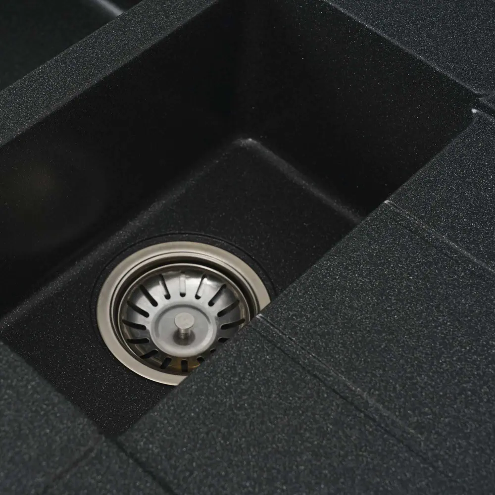 Мойка имеет матовую фактуру и приятный для глаза цвет - антрацит, что позволяет ей легко вписаться в интерьер кухни.