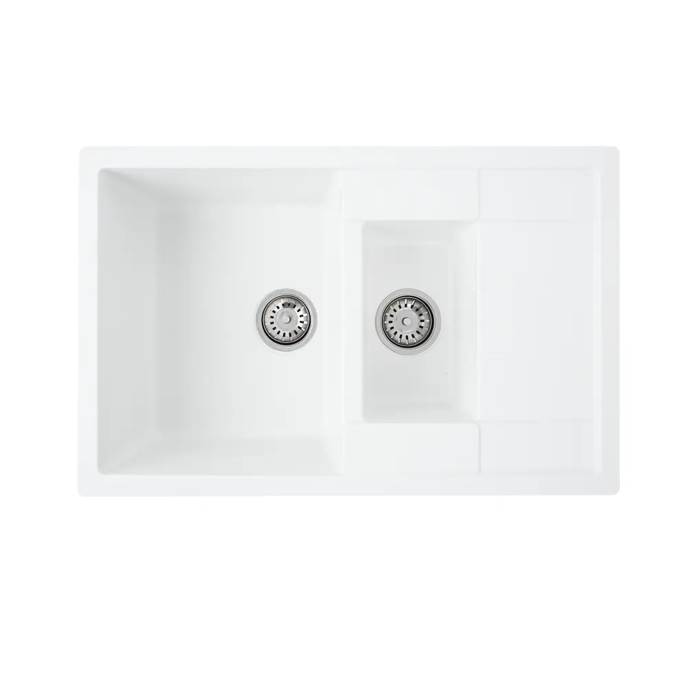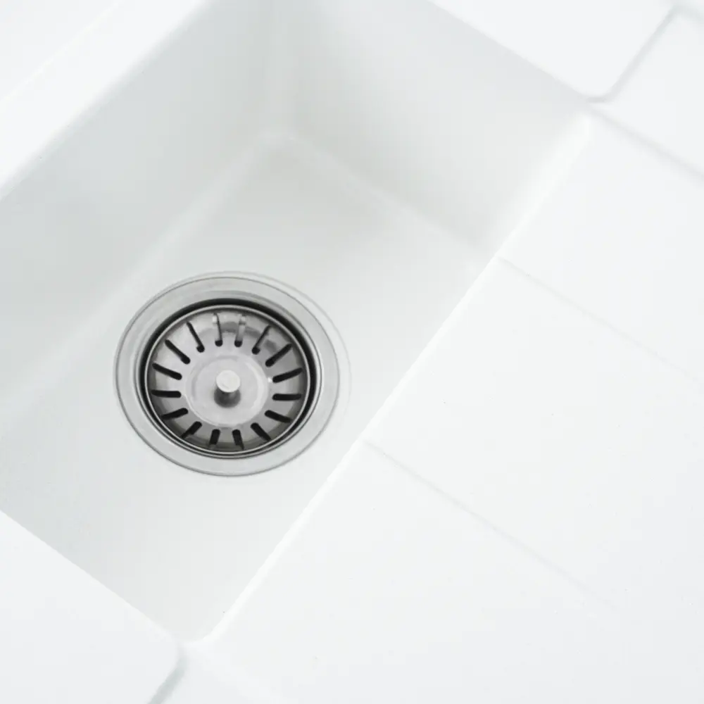 Мийка на 80% складається з кварцу та на 20% з надзвичайно твердої акрилової смоли, завдяки чому невибаглива у догляді, а також має великий запас міцності.