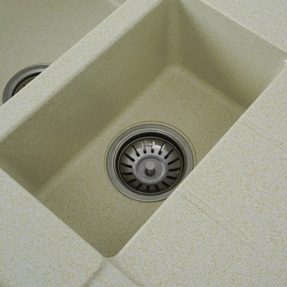 Мийка на 80% складається з кварцу та на 20% з надзвичайно твердої акрилової смоли, завдяки чому невибаглива у догляді, а також має великий запас міцності.