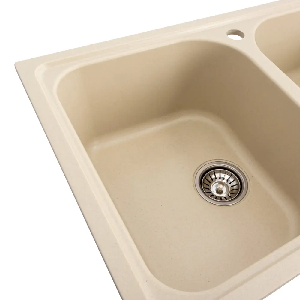 Гранітна мийка для кухні 7950 EQUATORIA українського бренду Platinum - це стильна, врізна, прямокутна мийка, яка своїм виглядом чудово доповнить дизайн вашої кухні. Мийка на 80% складається з кварцу та на 20% з надзвичайно твердої акрилової смоли, завдяки чому невибаглива у догляді, а також має великий запас міцності. Розміри чаш, 420х335х200 мм, роблять її дуже місткою та зручною у використанні. Мийка має матову фактуру і приємний для ока колір що дозволяє їй легко вписатися в інтер'єр кухні. Мийка виготовлена в Україні із якісної німецької сировини за технологією Solid Surface з дотриманням усіх необхідних стандартів.