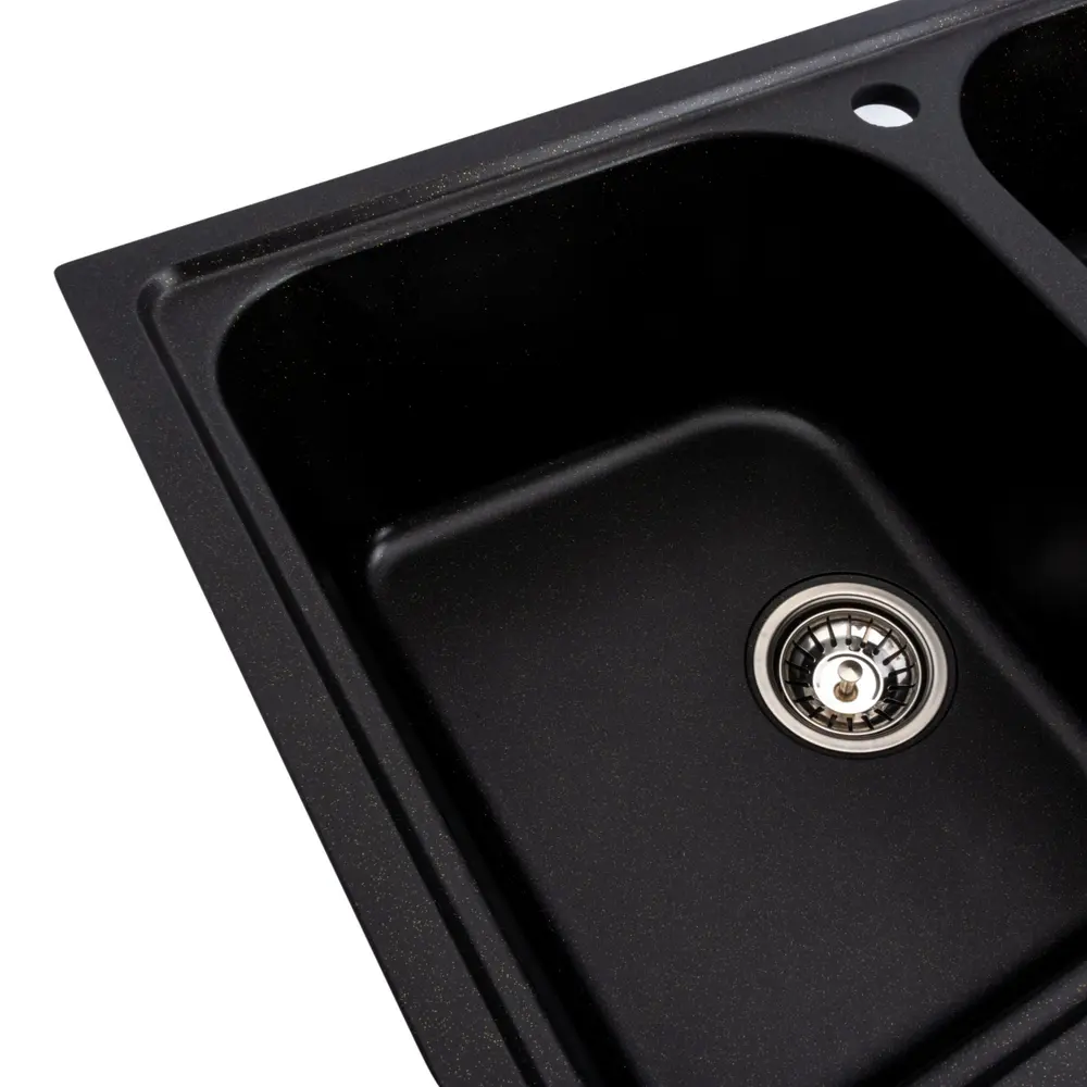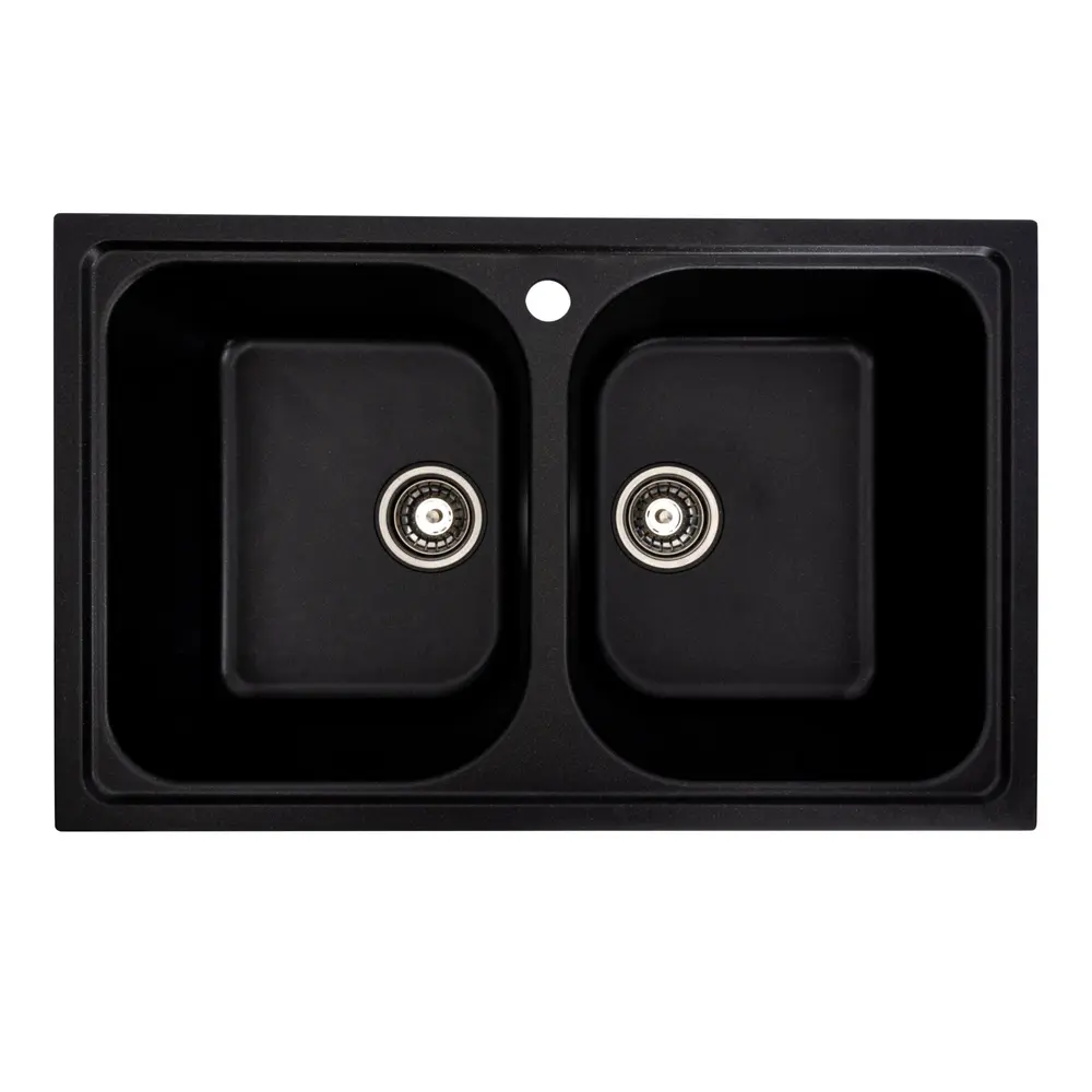 Гранітна мийка для кухні Platinum 7950 Equatoria глянець Чорний (Gold)