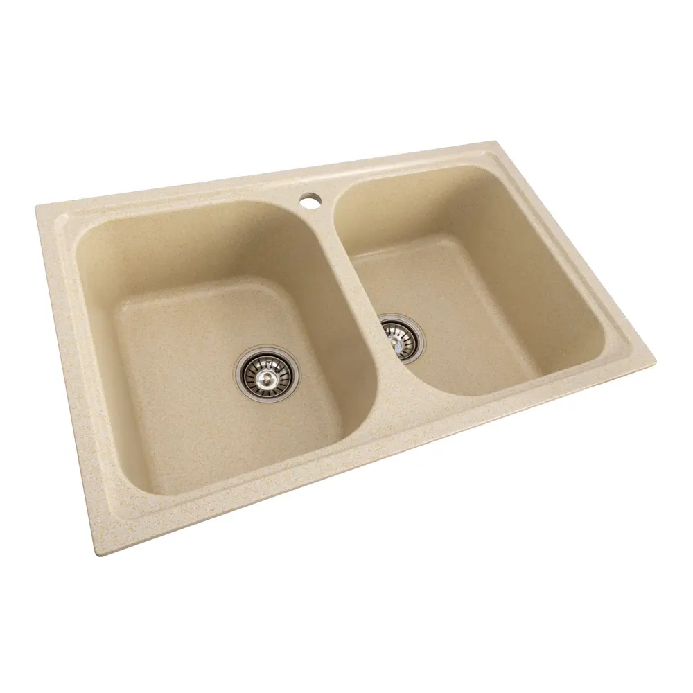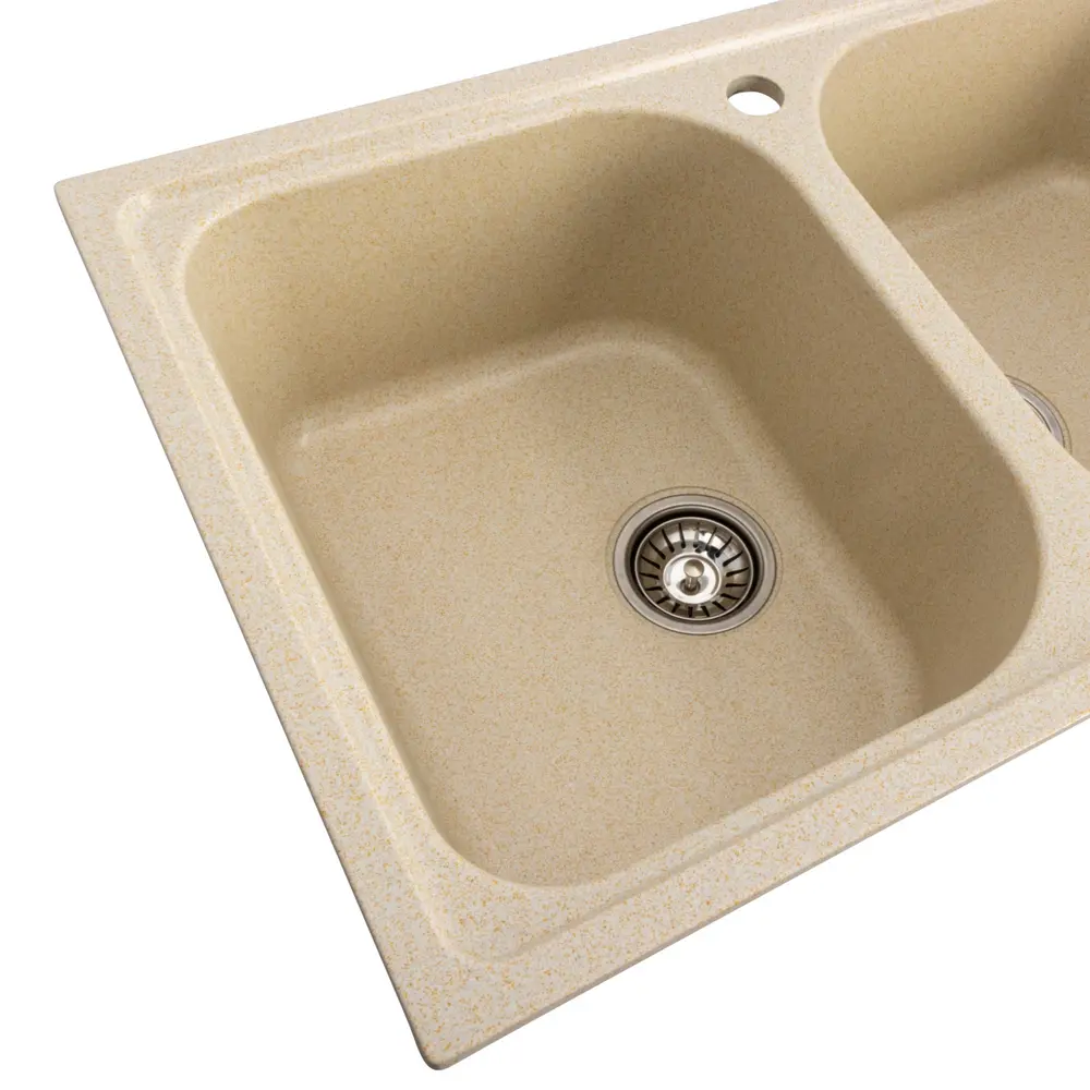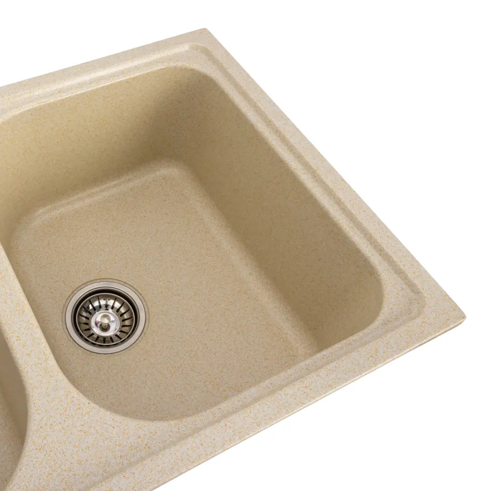 Гранітна мийка для кухні 7950 EQUATORIA українського бренду Platinum - це стильна, врізна, прямокутна мийка, яка своїм виглядом чудово доповнить дизайн вашої кухні. Мийка на 80% складається з кварцу та на 20% з надзвичайно твердої акрилової смоли, завдяки чому невибаглива у догляді, а також має великий запас міцності. Розміри чаш, 420х335х200 мм, роблять її дуже місткою та зручною у використанні. Мийка має матову фактуру і приємний для ока колір що дозволяє їй легко вписатися в інтер'єр кухні. Мийка виготовлена в Україні із якісної німецької сировини за технологією Solid Surface з дотриманням усіх необхідних стандартів.