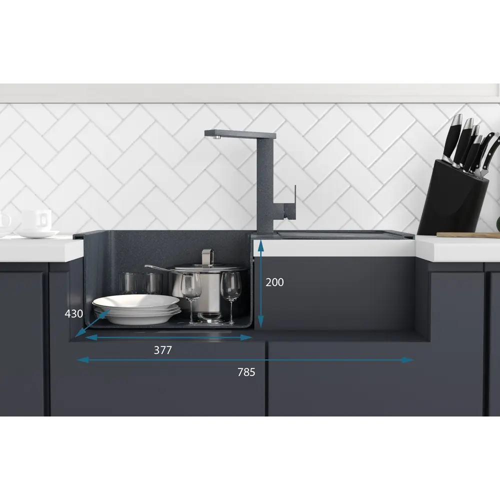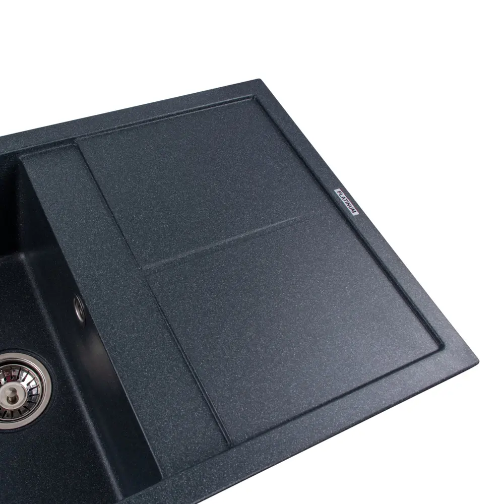 Гранітна мийка для кухні 7950 SELENA українського бренду Platinum - це стильна, врізна, прямокутна мийка, яка своїм виглядом чудово доповнить дизайн вашої кухні. Мийка на 80% складається з кварцу та на 20% з надзвичайно твердої акрилової смоли, завдяки чому невибаглива у догляді, а також має великий запас міцності. Розміри чаші, 377x430x200 мм, роблять її дуже місткою та зручною у використанні. Монтаж здійснюється врізним способом у кухонну шафу шириною не менше 500 мм. Мийка має матову фактуру і приємний для ока колір що дозволяє їй легко вписатися в інтер'єр кухні. Мийка виготовлена в Україні із якісної німецької сировини за технологією Solid Surface з дотриманням усіх необхідних стандартів.