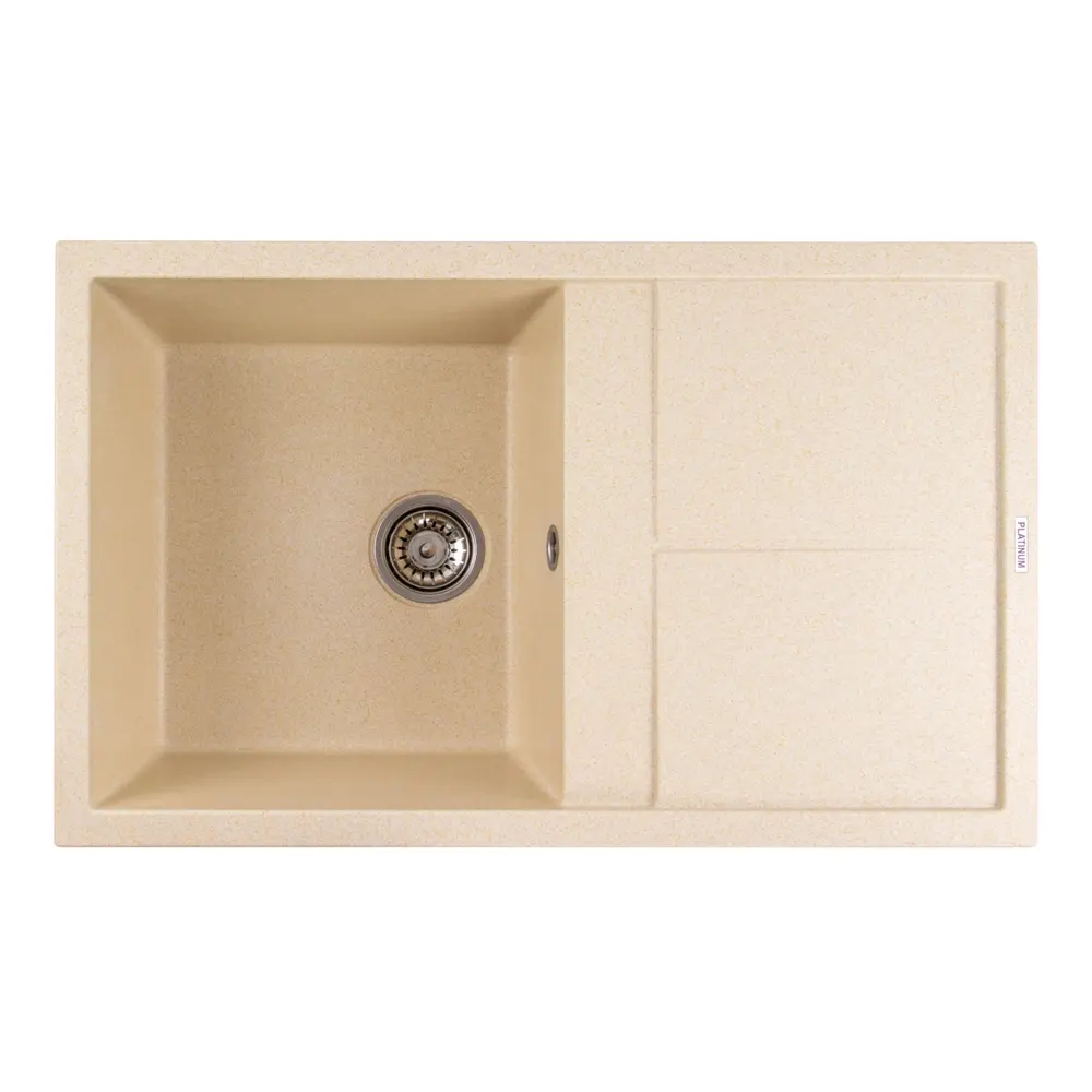 Гранитная мойка для кухни 7950 SELENA украинского бренда Platinum – это стильная, врезная, прямоугольная мойка, которая своим видом прекрасно дополнит дизайн вашей кухни. Мойка на 80% состоит из кварца и на 20% из очень жесткой акриловой смолы, благодаря чему неприхотлива в уходе, а также имеет большой запас прочности. Размеры чаши, 377x430x200 мм, делают ее очень вместительной и удобной в использовании. Монтаж производится врезным способом в кухонный шкаф шириной не менее 500 мм. Мойка имеет матовую фактуру и приятный для глаза цвет позволяющий ей легко вписаться в интерьер кухни. Мойка изготовлена в Украине из качественного немецкого сырья по технологии Solid Surface с соблюдением всех необходимых стандартов.