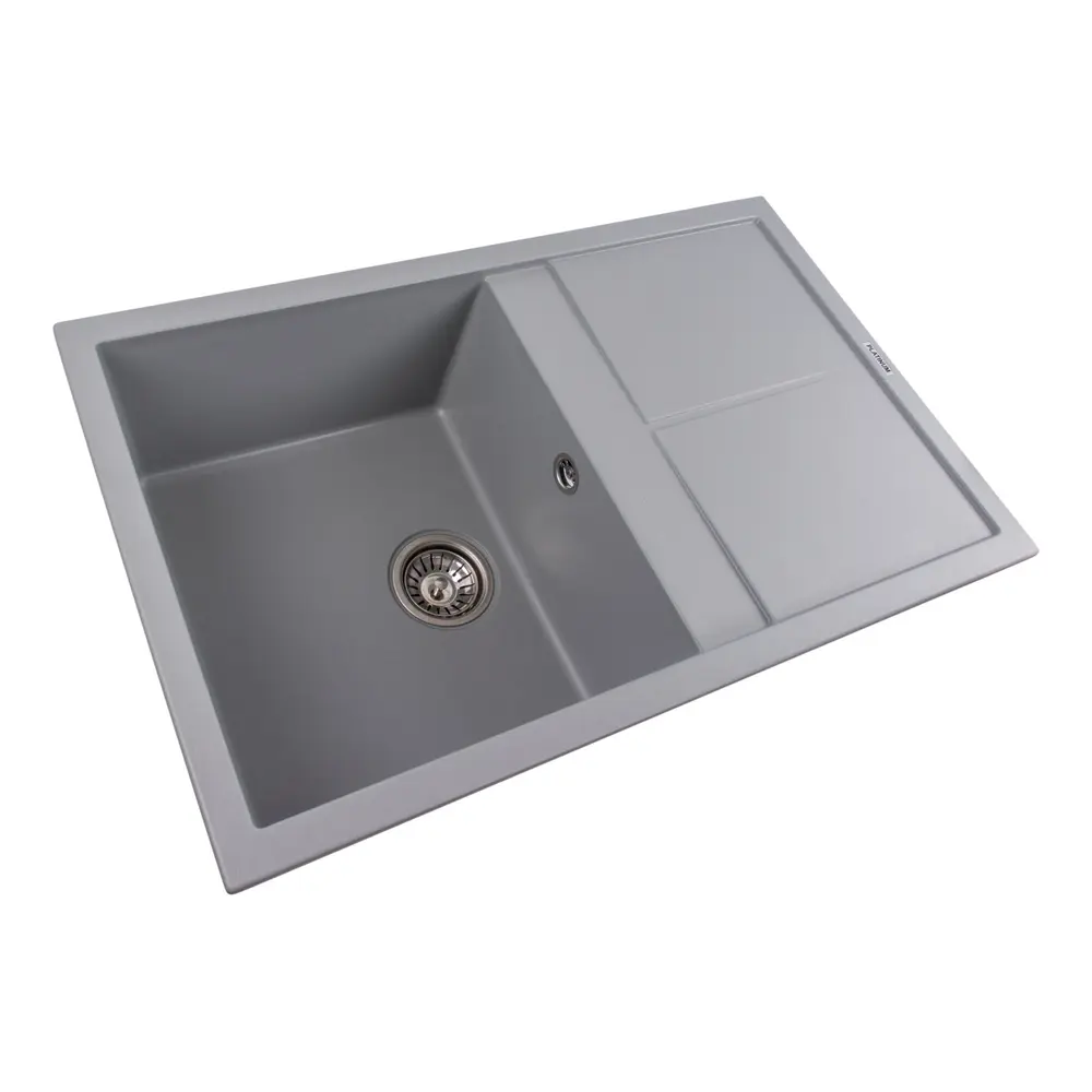 Гранітна мийка для кухні 7950 SELENA українського бренду Platinum - це стильна, врізна, прямокутна мийка, яка своїм виглядом чудово доповнить дизайн вашої кухні. Мийка на 80% складається з кварцу та на 20% з надзвичайно твердої акрилової смоли, завдяки чому невибаглива у догляді, а також має великий запас міцності. Розміри чаші, 377x430x200 мм, роблять її дуже місткою та зручною у використанні. Монтаж здійснюється врізним способом у кухонну шафу шириною не менше 500 мм. Мийка має матову фактуру і приємний для ока колір що дозволяє їй легко вписатися в інтер'єр кухні. Мийка виготовлена в Україні із якісної німецької сировини за технологією Solid Surface з дотриманням усіх необхідних стандартів.