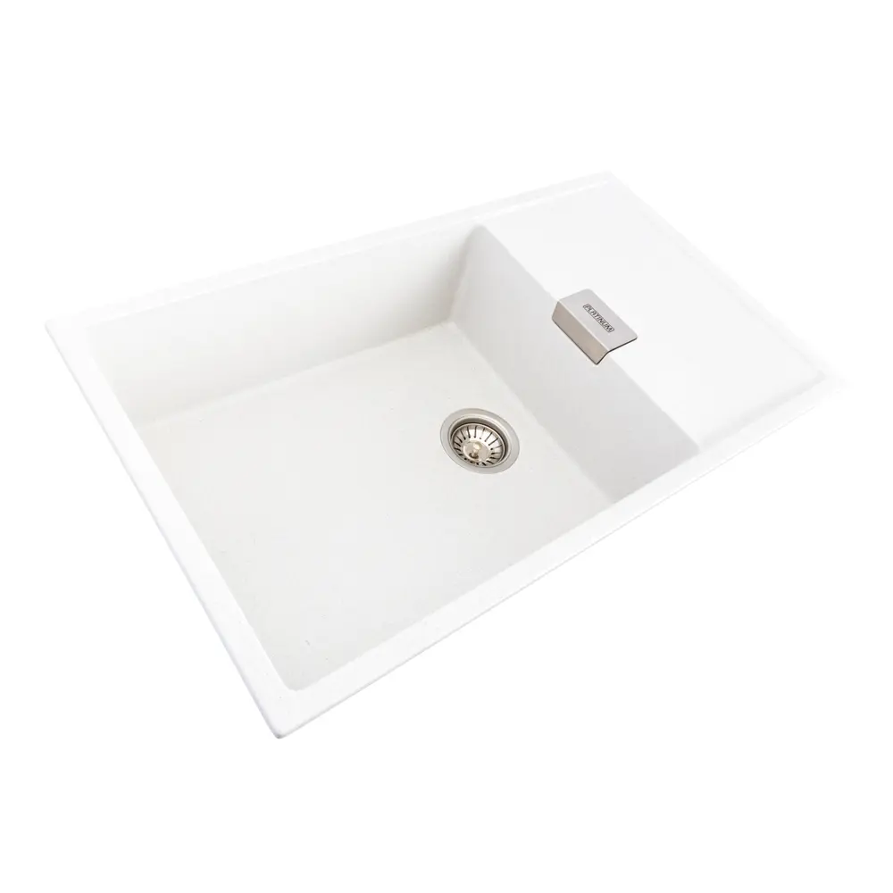 Гранітна мийка для кухні 8650 DIAMOND українського бренду Platinum - це стильна, врізна, прямокутна мийка, яка своїм виглядом чудово доповнить дизайн вашої кухні. Мийка на 80% складається з кварцу та на 20% з надзвичайно твердої акрилової смоли, завдяки чому невибаглива у догляді, а також має великий запас міцності. Розміри чаші, 545х450х185 мм, роблять її дуже місткою та зручною у використанні. Мийка має матову фактуру і приємний для ока колір що дозволяє їй легко вписатися в інтер'єр кухні. Мийка виготовлена в Україні із якісної німецької сировини за технологією Solid Surface з дотриманням усіх необхідних стандартів.