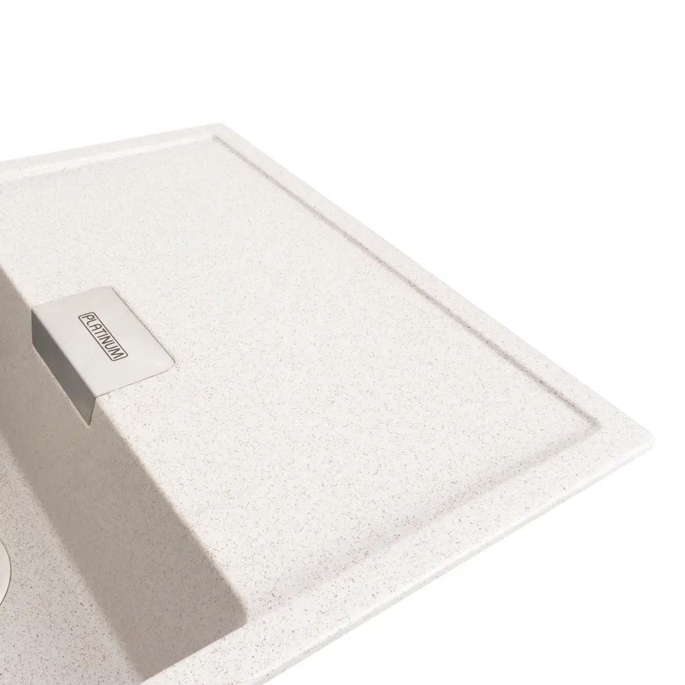 Гранитная мойка для кухни 8650 DIAMOND украинского бренда Platinum – это стильная, врезная, прямоугольная мойка, которая своим видом прекрасно дополнит дизайн вашей кухни. Мойка на 80% состоит из кварца и на 20% из очень жесткой акриловой смолы, благодаря чему неприхотлива в уходе, а также имеет большой запас прочности. Размеры чаши, 545х450х185 мм, делают ее очень вместительной и удобной в использовании. Мойка имеет матовую фактуру и приятный для глаза цвет позволяющий ей легко вписаться в интерьер кухни. Мойка изготовлена в Украине из качественного немецкого сырья по технологии Solid Surface с соблюдением всех необходимых стандартов.