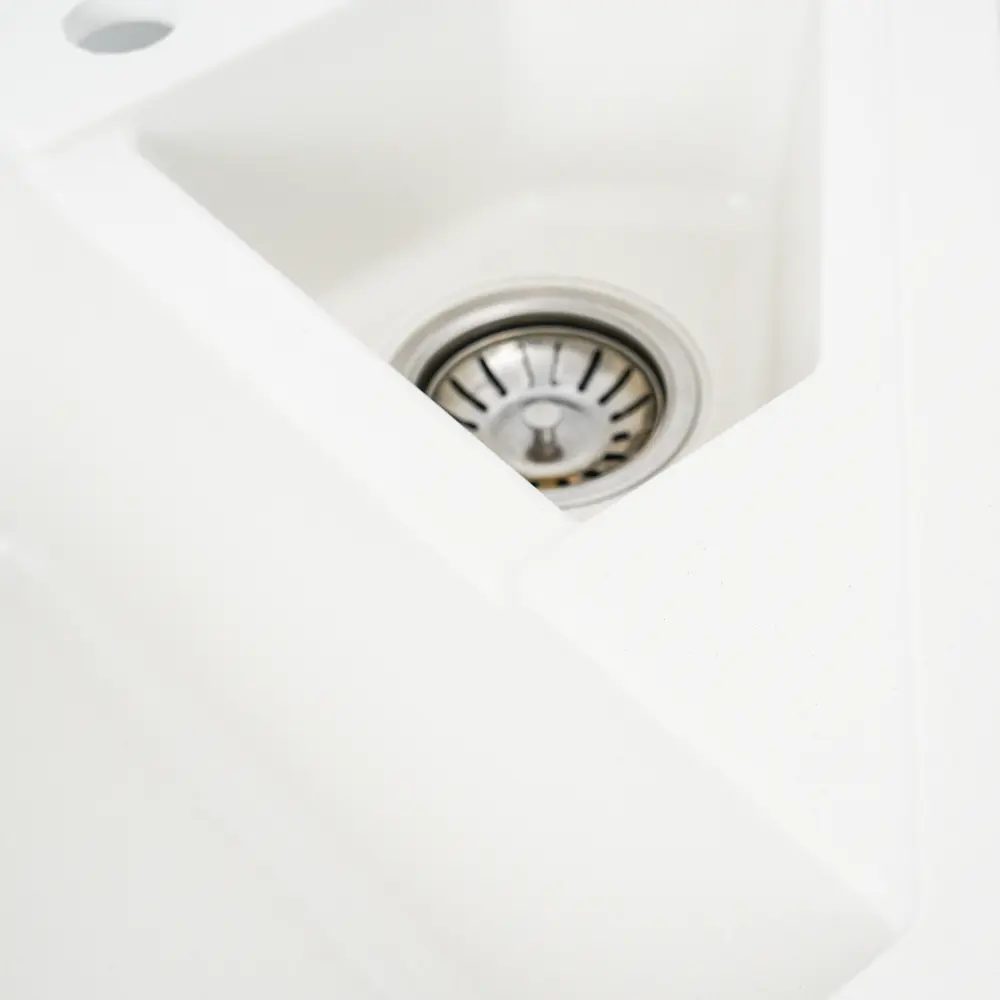 Мийка має матову фактуру і приємний для ока колір - білосніжний, що дозволяє їй легко вписатися в інтер'єр кухні.