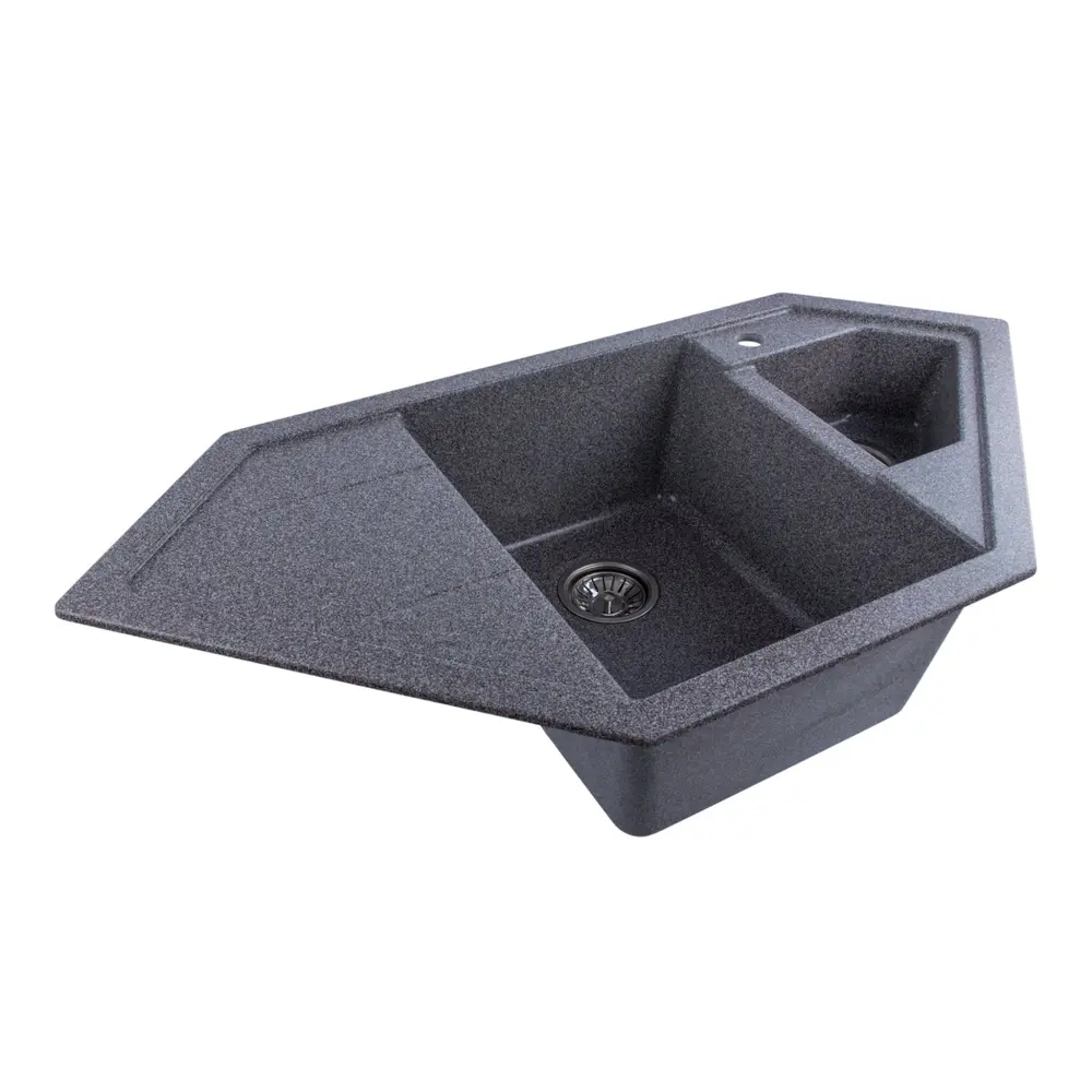 Мойка имеет матовую фактуру и приятный для глаза цвет - микс, что позволяет ей легко вписаться в интерьер кухни.