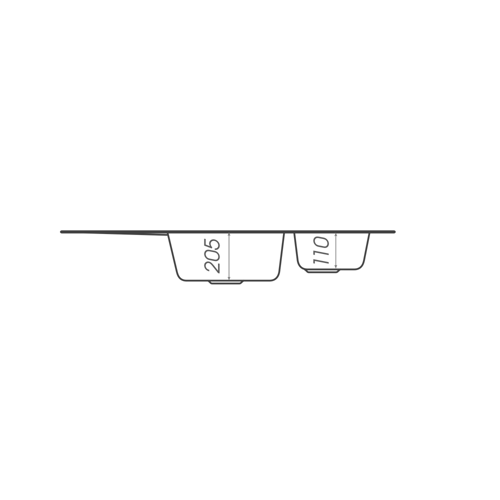 Розміри першої чаші, 425х340х205 мм, роблять її дуже місткою та зручною у використанні. Друга чаша має розміри 200х210х110, а наявність відділу для сушіння, робить процес миття посуду швидким та легким. Монтаж здійснюється врізним способом у кухонну шафу шириною не менше 520 мм.