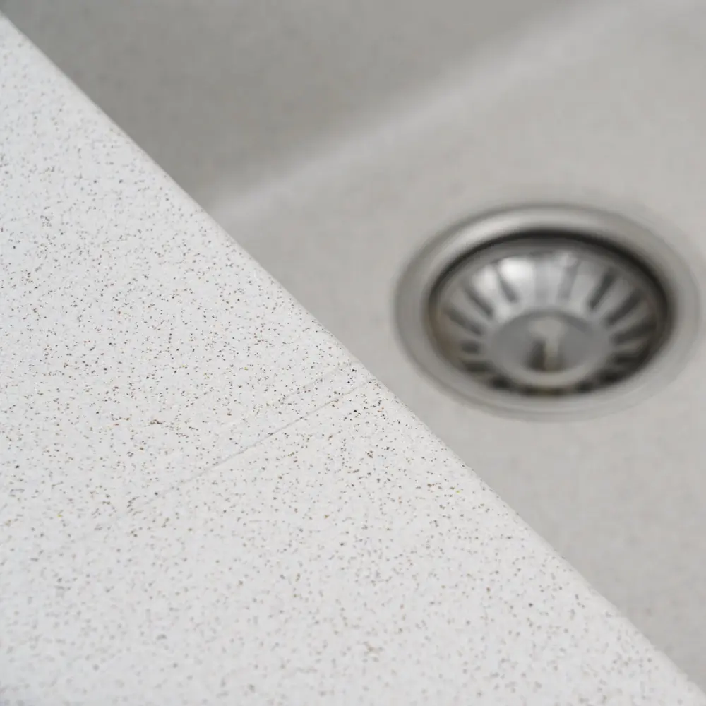 Мойка на 80% состоит из кварца и на 20% из чрезвычайно твердой акриловой смолы, благодаря чему неприхотлива в уходе, а также имеет большой запас прочности.
