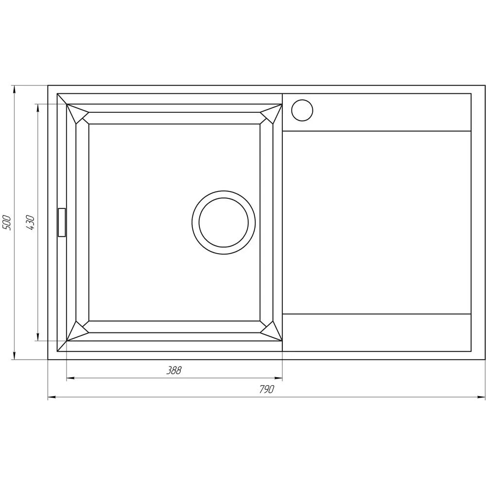 Кухонная раковина Globus Lux KOMO имеет одну мостике чашу, которая позволит мыть посуду разных размеров, углы немного закруглены, чтобы в них не скапливался грязь и жир, универсальная конструкция дна чаши не позволяет собираться воде.