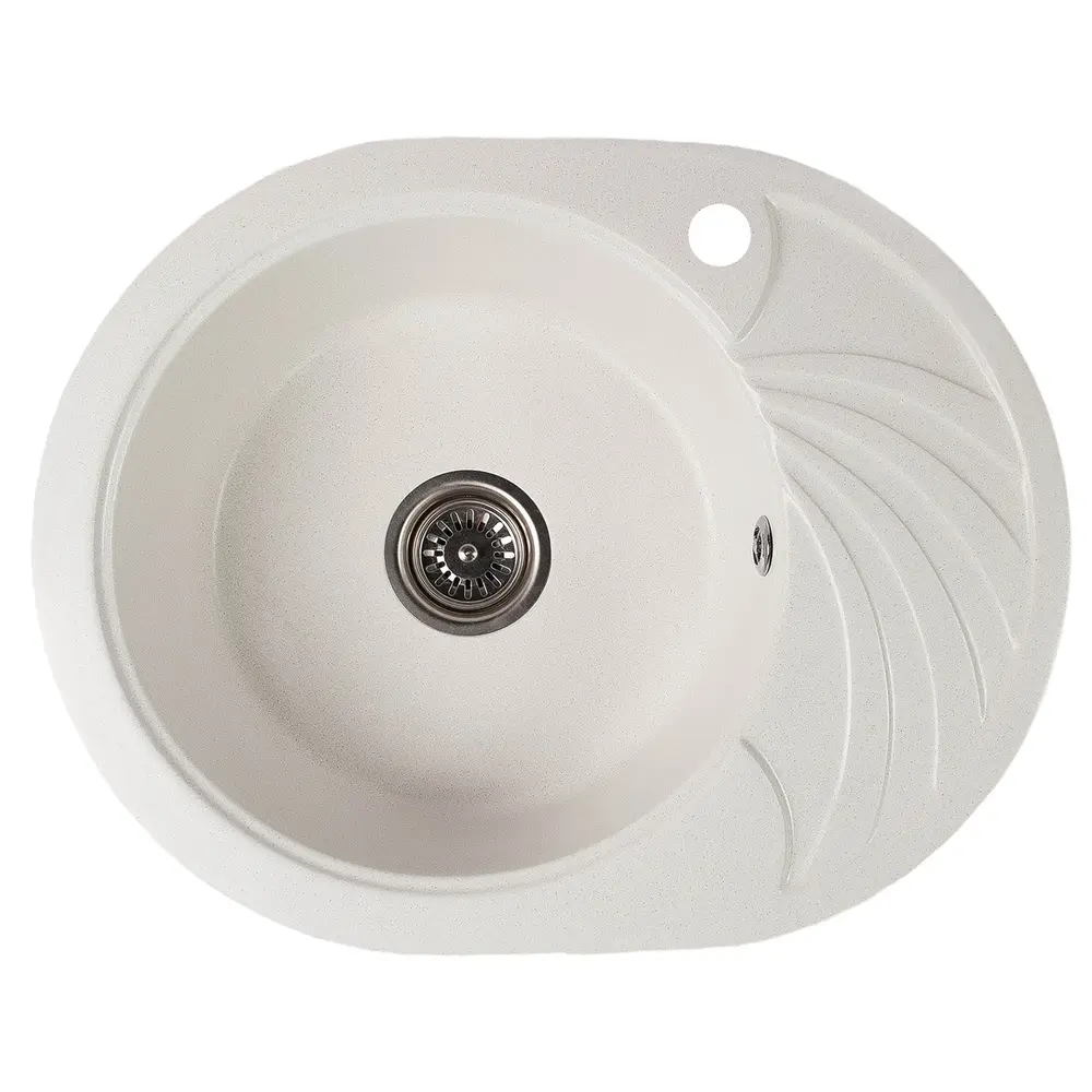 Белая круглая мойка с вырезом отверстия под смеситель, комплектом для установки и переливом Valetti Europe модель №13, глянцевая поверхность, фирменная гарантия качества, доставка по всей Украине. Em> Компактная мойка для кухни овальной формы с круглой чашей диаметром 390 мм и глубиной 180 мм, с боковым переливом в ней и большим диаметром слива, где располагается и мусоросборник. em> по разработанной итальянскими производителями технологии "Мультиброня" материал наносится слоями для большей надежности изделия. Состоит из натуральных компонентов и соединяют смол в соотношении 80/20%. Em> Легкая в уходе и уборке, легко удаляются любые загрязнения, в том числе и сильно красящие. Em> устойчива к бытовых нагрузок в виде падения предметов, царапин и использования в различных температурных режимах. em> Гарантия 5 лет от производителя. em> Доставка с завода. Платно. Новой почтой. Em> Оплата на карту или при получении - по желанию клиента. Em>