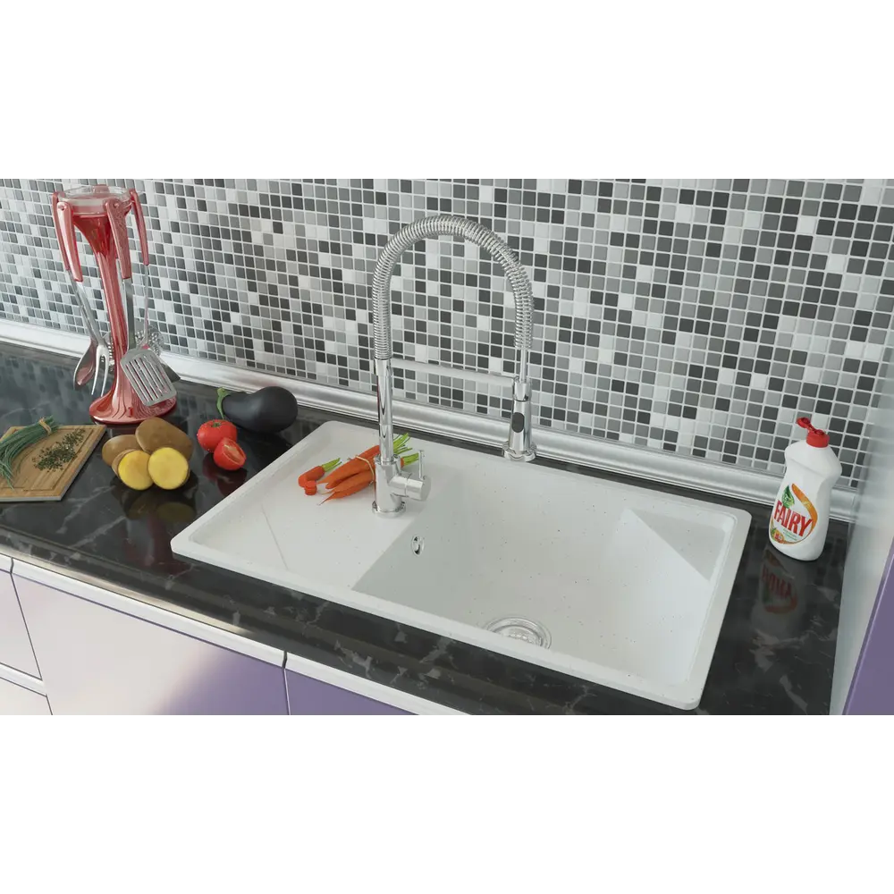 белая гранитная мойка с возможностью различного расположения змишувачазмишувачив и других приспособлений (дозатора, кнопки клапана-автомата) Valetti Europe модель №58 размером 78 * 46 см, с просторной чашей 455х400х185 мм и полочкой для сушки посуды. Толстые стенки 15 мм Гарантия 5 рокив.Цикава и не похожа на других модель гранитной мойки, где можно разместить не только один кран, но и несколько их штук, например основной и для фильтрованной воды или применить комбинацию в виде смесителя и дозатора, кнопки клапана- автомата и т.п. Так же можно оставить и вовсе без отверстий, если расположение смесителя планируется на стене или Вы еще не определились со стороной розмищення.Надийна в эксплуатации: устойчива к пятен любого происхождения, включая сильно красящие продукты, жидкости и вещества, царапин, падения предметов, высокой и низкой температуры, имея 15 мм стенки, которые при этом еще и эффективно глушат любые звуки от воды или посуду.Е перелив для отвода набранной води.Виготовляеться на украинском-итальянском заводе в Запорожье, открытом в 2008 году с применением передовых технологий и материалов завезенных из Европы. Для изготовления применяется технология нанесения материала слой за слоем для повышения прочности изделия - "Мультиброня" .Пряма поставка с завода по Новой почтой или Деливери с оплатой их услуг получателем вантажу.Для Запорожье действует бесплатная доставка додому.Оплата покупки происходит при ее получении или на карту Приват.