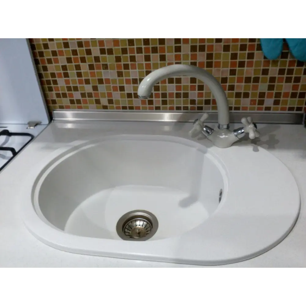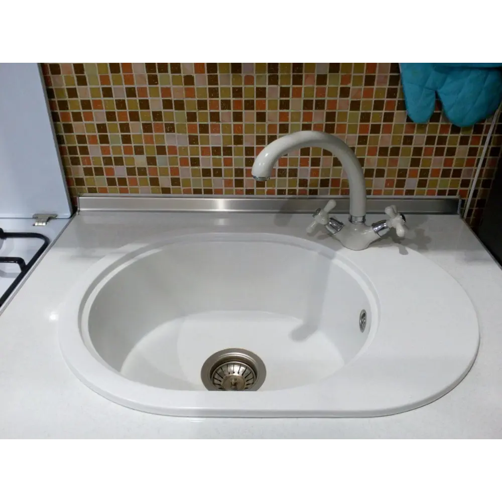 овальная модель гранитной мойки белого цвета с небольшим полочкой для сушки и местом под смеситель Valetti Europe модель №62. Чаша с переливом, размер 450х370х180 мм. Общий размер изделия 620х430х195 мм. Производство Унраина-Италия. г. Запорожье. Гарантия 5 рокив.Стийка к любым загрязнениям, включая сильно красящие вещества. Не способна впитывать ни вещества, ни запахи.Перенесе любую температуру.Товсти стенки 1.5. см обеспечат высокую надежность конструкции, а так же сделают работу бесшумной, убирая звук от падающей струи воды или скрежета посуду.Легка в уборке. Большой объем чаши, позволяет размещать достаточно большие предмети.Робимо отверстие под кран по заказу покупателя или оставляем без нього.Для отвода избытка набранной воды является перелив.Доставка платная, прямо с завода. Новой почтой или Деливери.Оплата покупки на карту при ее получении - выбирает покупатель.
