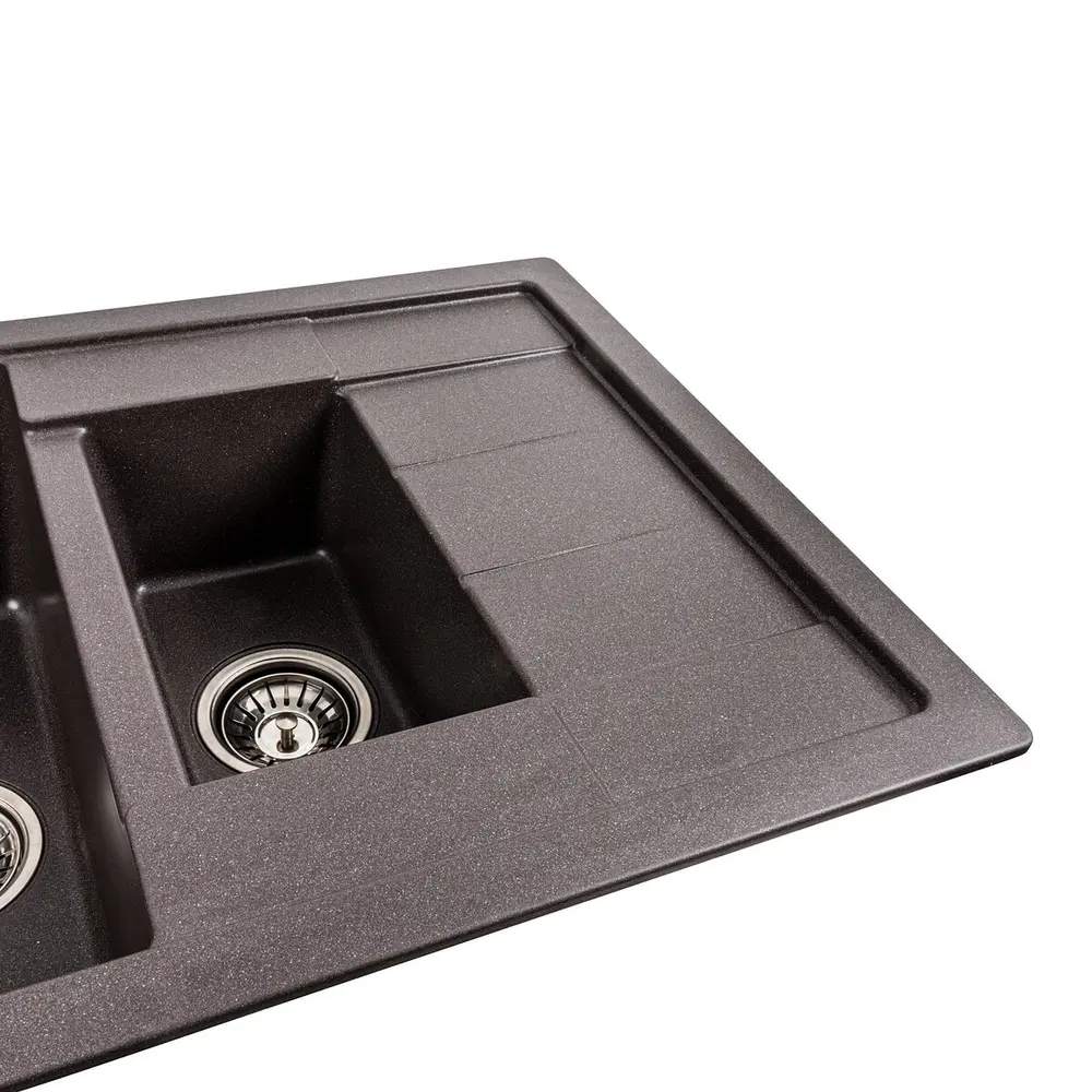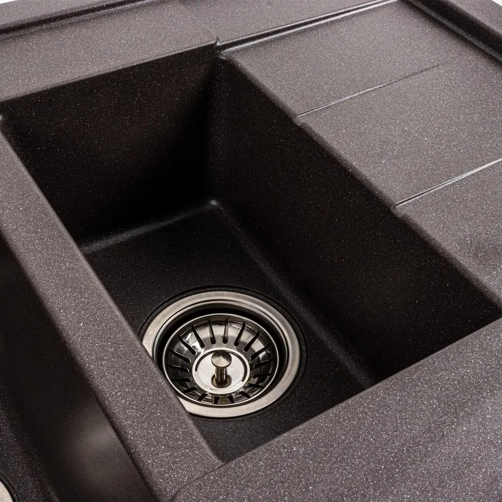 Мойка на 80% состоит из кварца и на 20% из чрезвычайно твердой акриловой смолы, благодаря чему неприхотлива в уходе, а также имеет большой запас прочности.