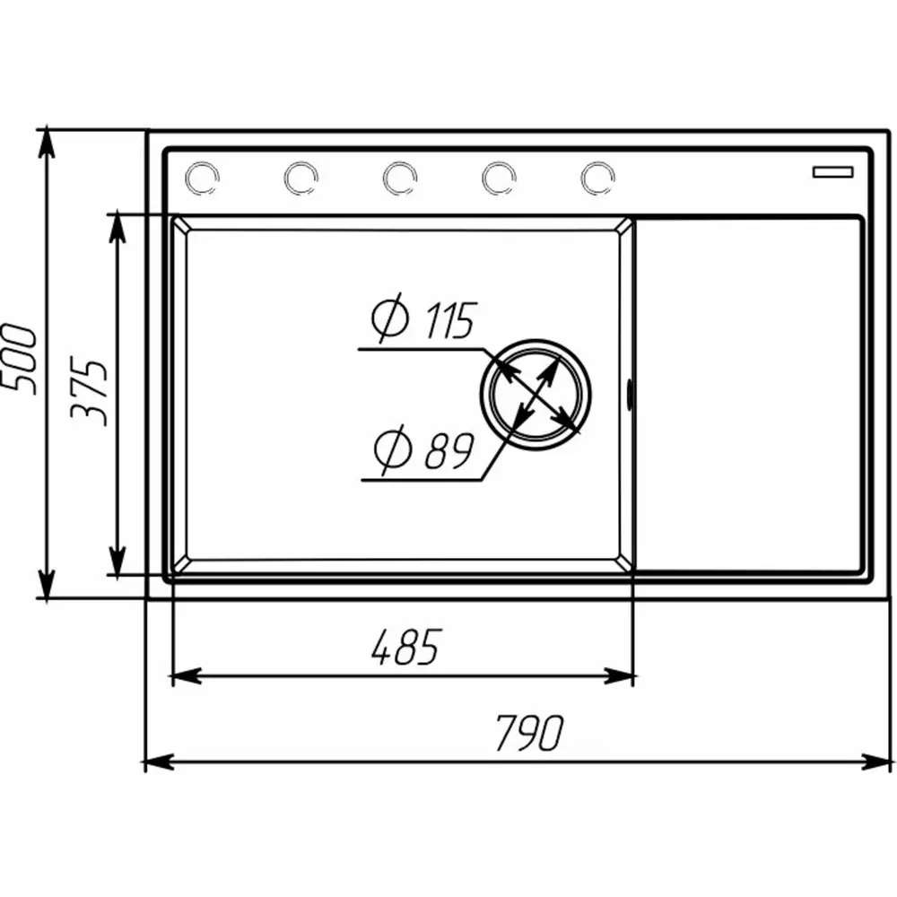 Эта мойка имеет размеры, делающие ее идеальным выбором для разных кухонь. С размерами 790х500х200мм она легко впишется даже в небольшие пространства, обеспечивая высокий уровень удобства и функциональности. Размер чаши 490x380x200мм.