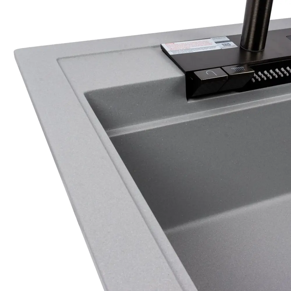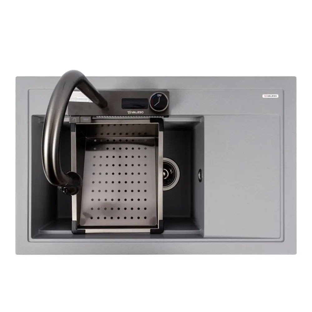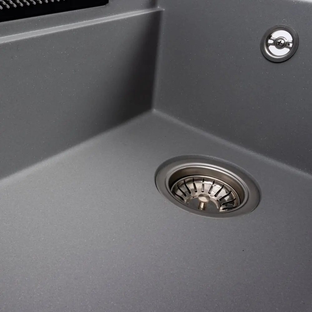 Гранитная мойка VALESO 7950 ATRUM в цвете серый металик — это удачное сочетание современного дизайна, надёжности и удобства. Она изготовлена из прочного гранитного композита, устойчивого к царапинам, перепадам температур и бытовой химии. Матовая поверхность придаёт изделию элегантный внешний вид и легко очищается.